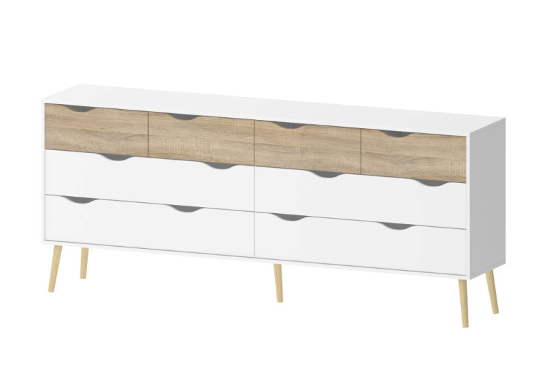 La commode Napoli à 8 tiroirs blanc et chêne est une commode de couleur blanche qui apporte à la fois style et fonctionnalité à votre intérieur. La commode de notre série Napoli est issue d'une série moderne avec des façades sculptées, des pieds ronds et une composition de matériaux tendance. La commode est de fabrication danoise et possède 4 petits et 4 grands tiroirs. La commode a des pieds en chêne massif. Ce produit est créé avec un souci du détail, ce qui garantit à la fois un attrait esthétique et une grande durabilité. Il est conçu dans un souci à la fois de fonctionnalité et de style, ce qui en fait le choix parfait pour n’importe quelle pièce de votre maison. Les matériaux utilisés sont de haute qualité, ce qui confère au produit une longue durée de vie et lui permet de résister à une utilisation quotidienne. Que ce soit pour le rangement ou comme ajout décoratif, ce produit rehaussera votre décor et apportera plus de confort et d'élégance à votre maison.