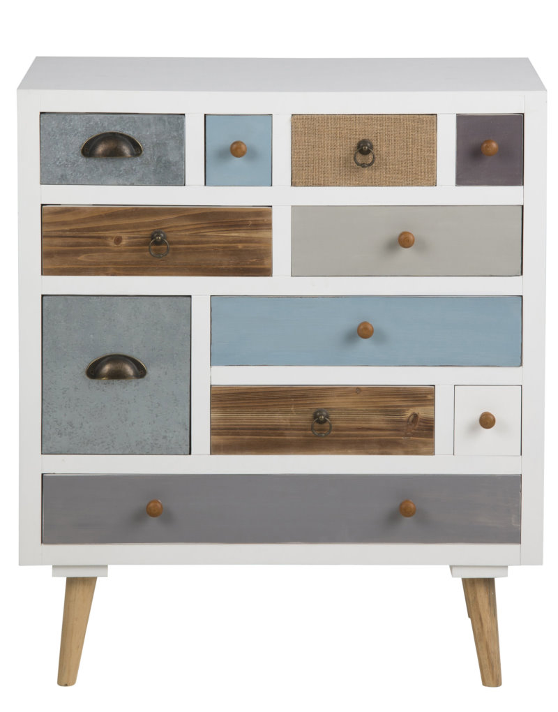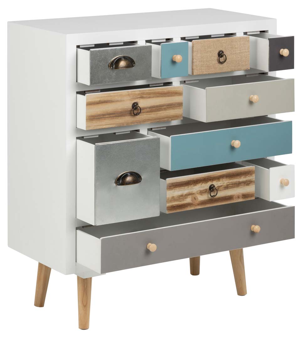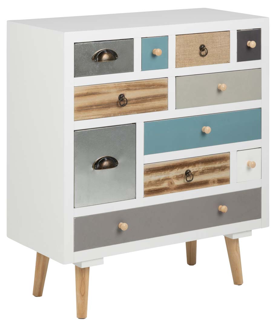 Commode Thames blanche avec 11 tiroirs multicolores. Livrée entièrement assemblée, cette commode de couleur blanche apporte à la fois style et fonctionnalité à votre maison. Notre commode Thames avec 11 tiroirs en plusieurs couleurs est réalisée dans un design amusant et délicieux. Livré CONSTRUIT, prêt à être mis en place. Il suffit de monter les pieds sur la commode. Vous pouvez utiliser la commode à plusieurs endroits de votre maison et dans plusieurs contextes. Ce produit est créé avec un souci du détail, ce qui garantit à la fois un attrait esthétique et une grande durabilité. Il est conçu dans un souci à la fois de fonctionnalité et de style, ce qui en fait le choix parfait pour n’importe quelle pièce de votre maison. Les matériaux utilisés sont de haute qualité, ce qui confère au produit une longue durée de vie et lui permet de résister à une utilisation quotidienne. Que ce soit pour le rangement ou comme ajout décoratif, ce produit rehaussera votre décor et apportera plus de confort et d'élégance à votre maison.