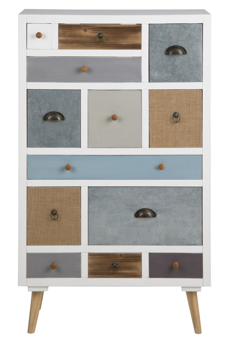 Commode Thames blanche avec 13 tiroirs multicolores. Livrée entièrement assemblée, cette commode de couleur blanche apporte à la fois style et fonctionnalité à votre maison. Notre commode Thames avec 13 tiroirs en plusieurs couleurs est réalisée dans un design amusant et délicieux. Livré CONSTRUIT, prêt à être mis en place. Il suffit de monter les pieds sur la commode. Vous pouvez utiliser la commode à plusieurs endroits de votre maison et dans plusieurs contextes. Ce produit est créé avec un souci du détail, ce qui garantit à la fois un attrait esthétique et une grande durabilité. Il est conçu dans un souci à la fois de fonctionnalité et de style, ce qui en fait le choix parfait pour n’importe quelle pièce de votre maison. Les matériaux utilisés sont de haute qualité, ce qui confère au produit une longue durée de vie et lui permet de résister à une utilisation quotidienne. Que ce soit pour le rangement ou comme ajout décoratif, ce produit rehaussera votre décor et apportera plus de confort et d'élégance à votre maison.
