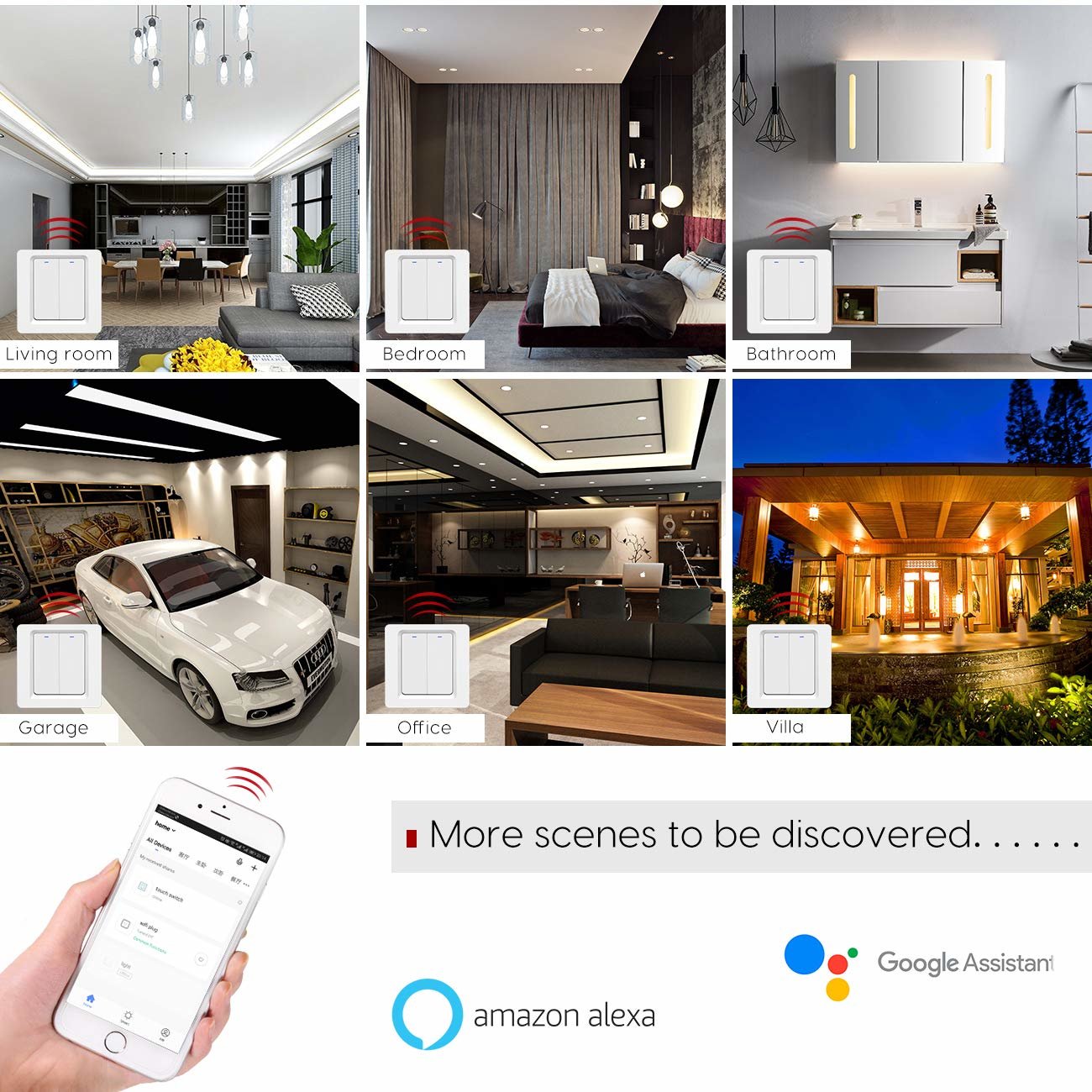 Commande vocale : Profitez de la commodité de contrôler l'éclairage en mains libres via la commande vocale avec Amazon Alexa et Google Home Assistant – parfait lorsque vous avez les mains occupées ou que vous entrez dans une pièce sombre. Un interrupteur sans fil rend la vie tellement plus facile !