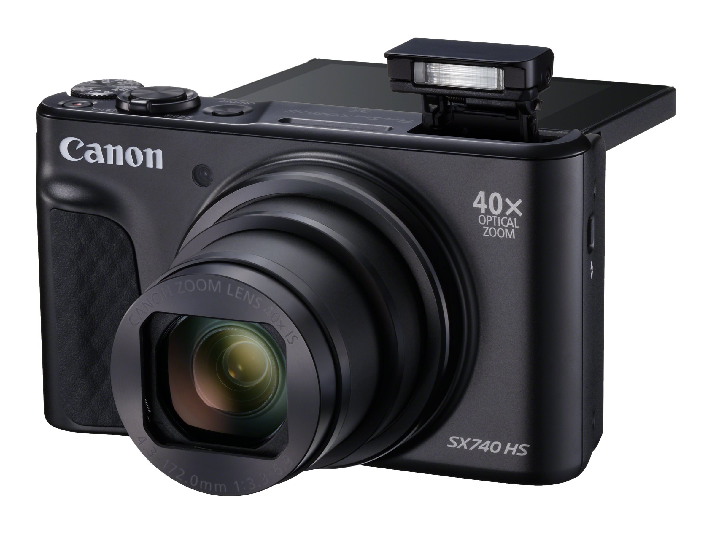 Canon PowerShot SX740 HS. Type d'appareil photo: Appareil-photo compact, Mégapixel: 20,3 MP, Taille du capteur d'image: 1/2.3", Type de capteur: CMOS, Résolution d'image maximale: 5184 x 3888 pixels. La sensibilité ISO (max): 3200. Zoom optique: 40x, Zoom numérique: 80x, Longueur focale: 4,3 - 172 mm. Wifi. Type HD: 4K Ultra HD, Résolution vidéo maximale: 3840 x 2160 pixels. Taille de l'écran: 7,62 cm (3"). PictBridge. Couleur du produit: Noir