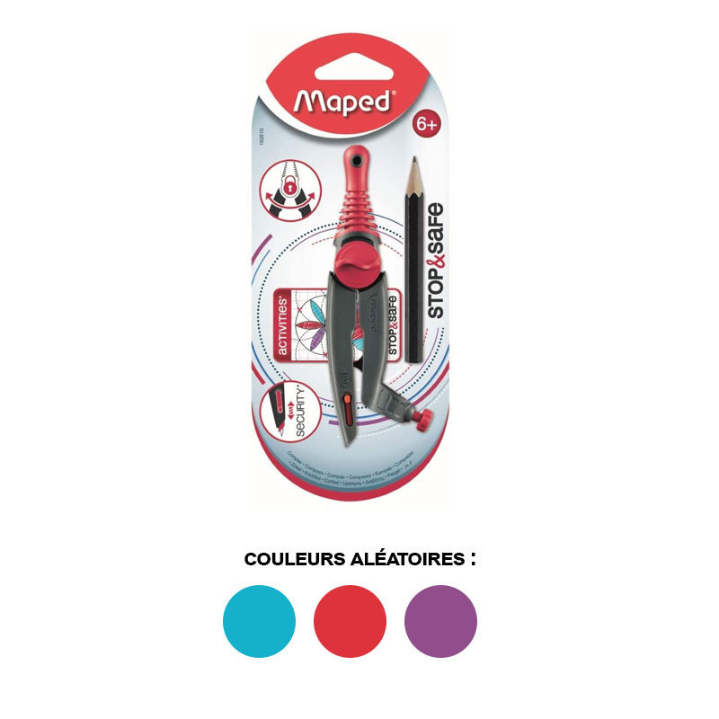 | Libellé | Compas - Scolaire - Avec bague pour crayon graphite stylo - Stop & Safe - Maped |