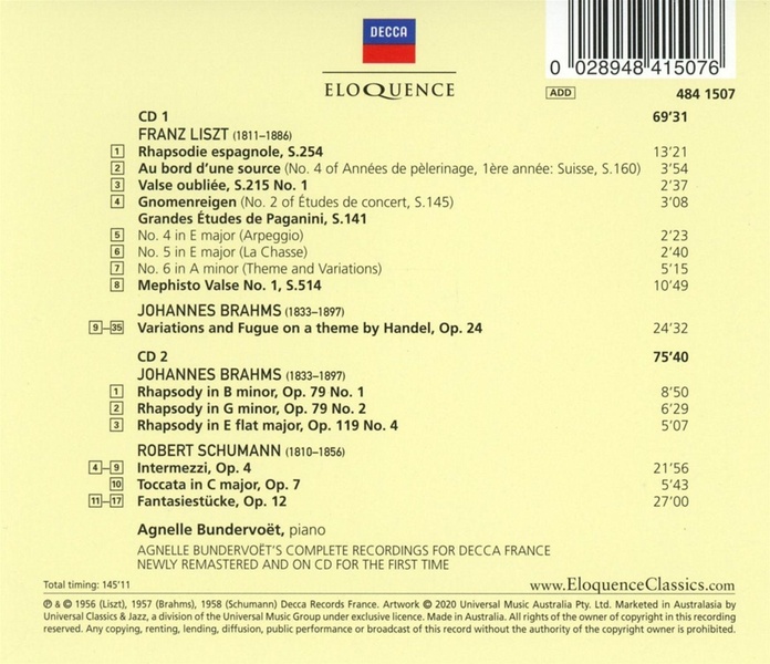 - Agnelle Bundervoët, Robert Schumann, Johannes Brahms, Franz Liszt