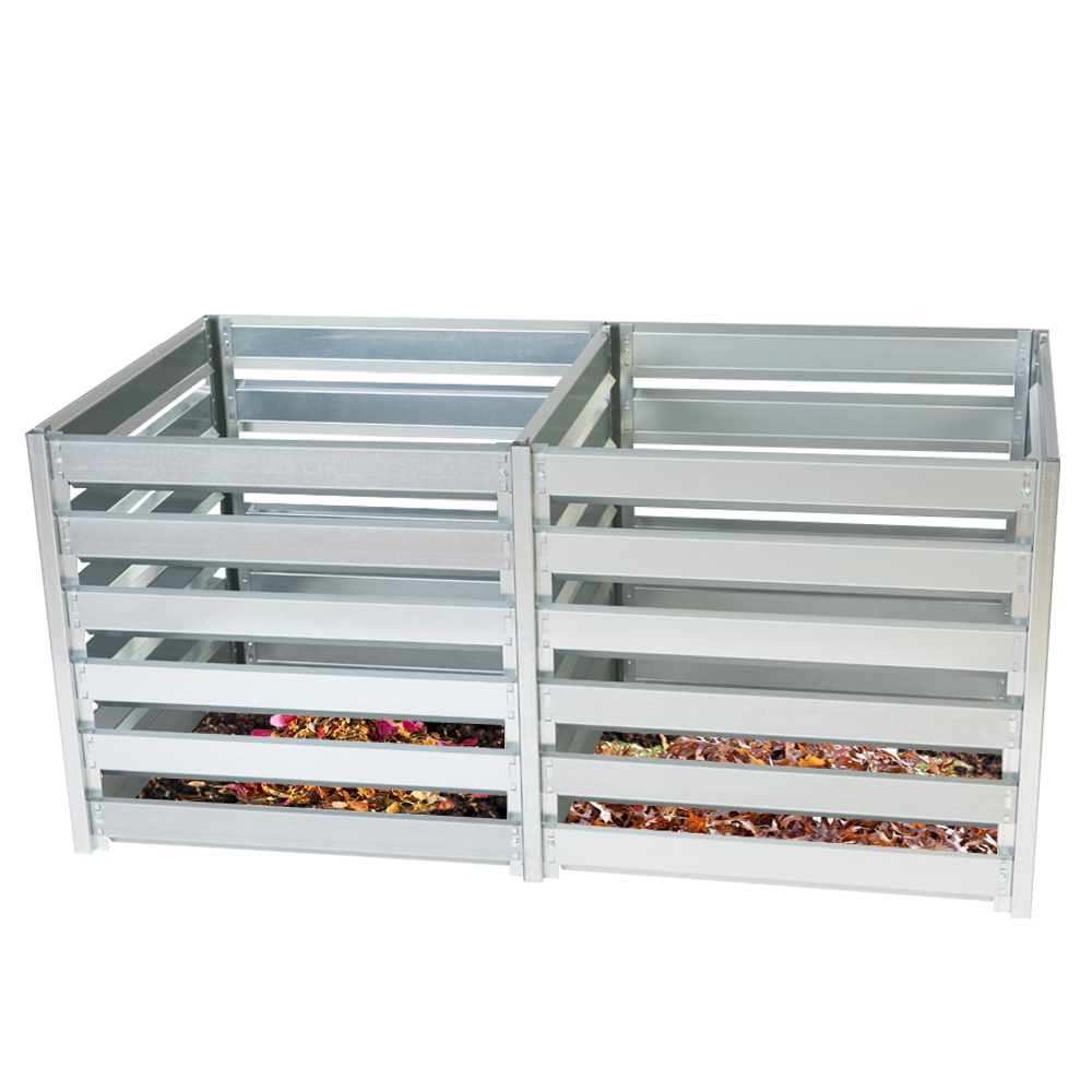 Pratique à utiliser. Le compost est parfaitement aéré grâce aux espaces entre les bandes d’acier galvanisé, puis, une fois mûr, il est facile à enlever grâce à l’ingénieuse conception permettant de retirer une ou deux bandes inférieures. Le bac à compost n’a ni porte ni couvercle, ce qui permet d’y déposer facilement les matières organiques.