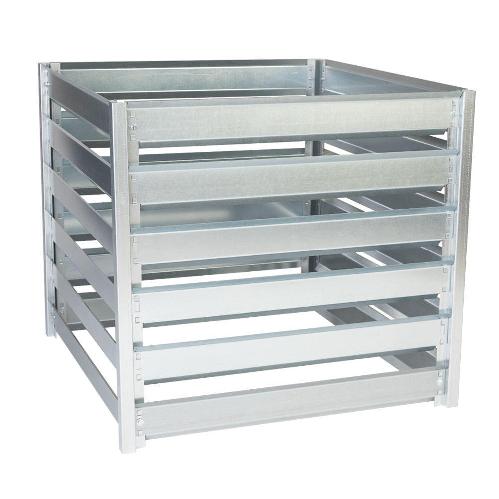 Résistant aux conditions météorologiques. Le bac à compost est fabriqué en acier galvanisé de 1 mm (bandes) et 1,5 mm (coins), il ne rouille donc pas et peut résister aux mauvaises conditions météorologiques. La pluie, la neige et le soleil ne peuvent pas endommager le composteur en métal, contrairement à un composteur en plastique ou en bois.