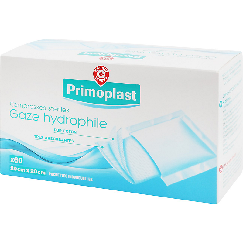 Compresses stériles gaze hydrophile X60 - 20cmX20cm - PRIMOPLAST