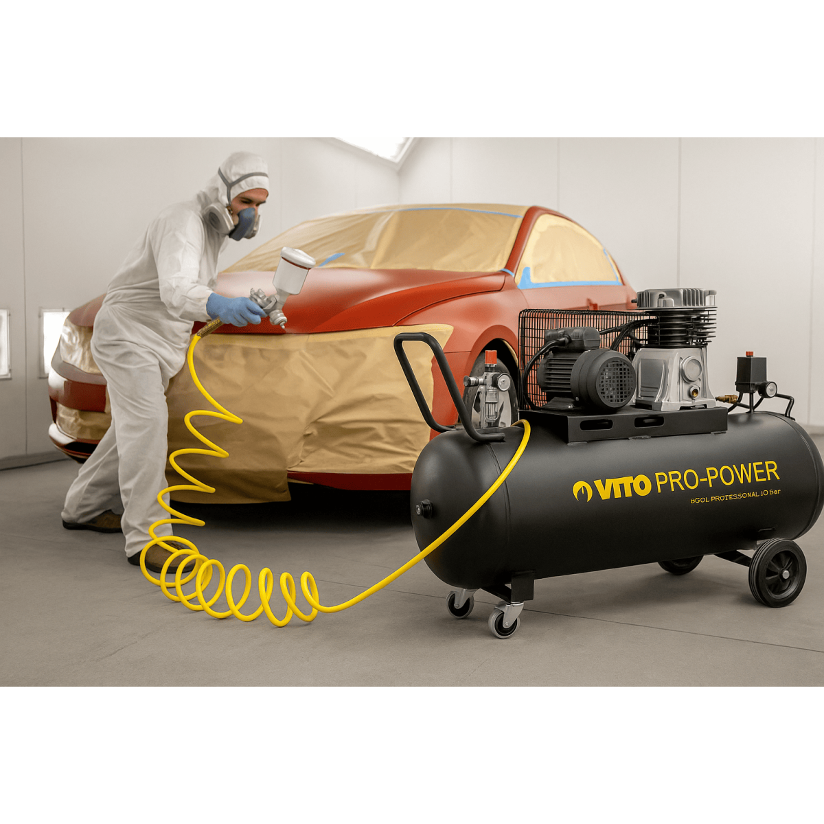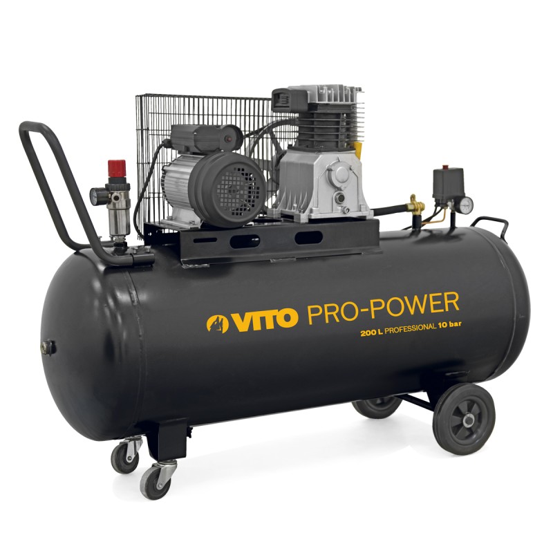 Le compresseur électrique professionnel 200 litres VITO d'une puissance de 3000 W est puissant et résistant, il s'adapte aux travaux les plus exigeants tels que l'agrafage, le soufflage, le gonflage, le nettoyage, le clouage, le perçage, la peinture. Ce compresseur est conçu pour les exigences industrielles et pour les ateliers professionnels. Il est idéal pour une utilisation mobile et mais aussi pour une installation permanente.