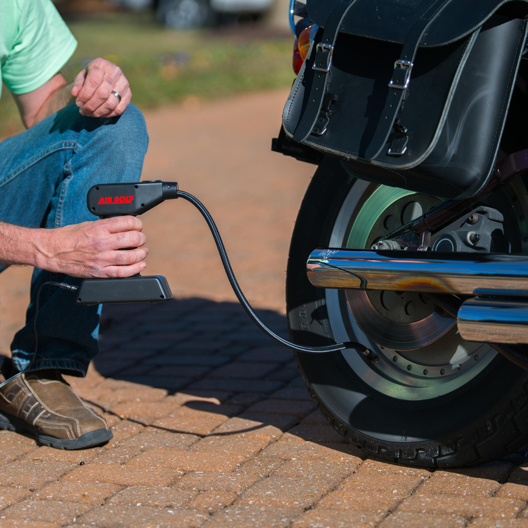 - Air Bolt est le compresseur d'air portatif haute puissance à poignée pistolet. Sa prise en main est ergonomique. Idéal pour gonfler vos pneus en quelques secondes. Grâce à son manomètre, vos pneus seront regonflés en un clin d'œil. La lecture est facile pour contrôler et ne pas dépasser la pression voulue.