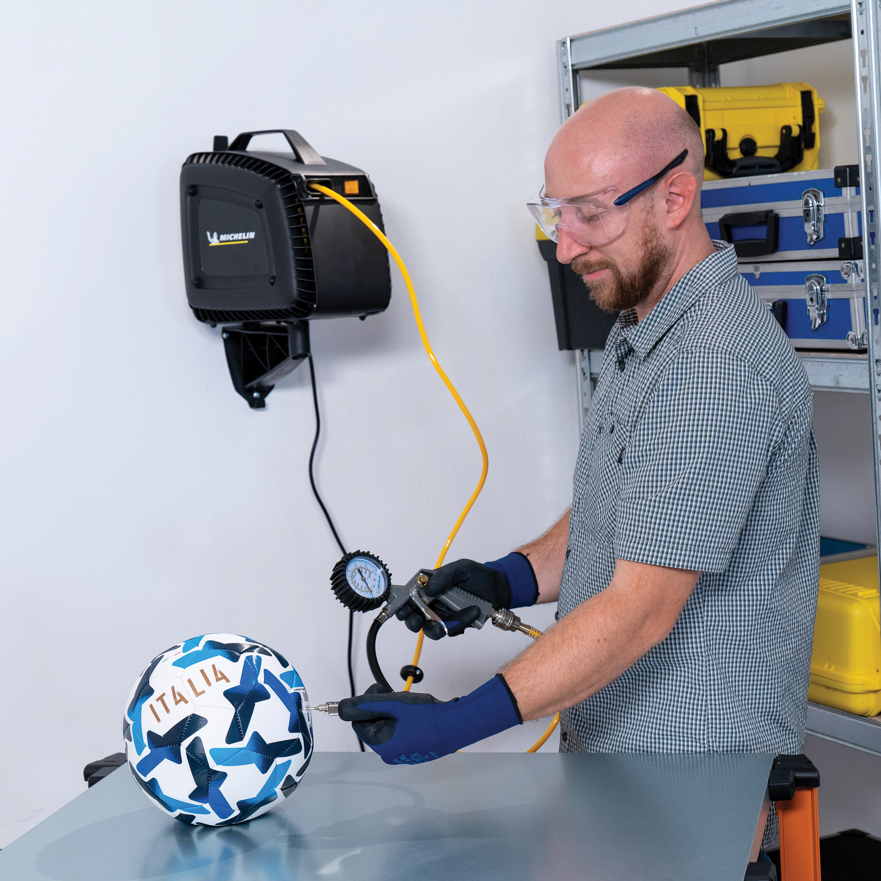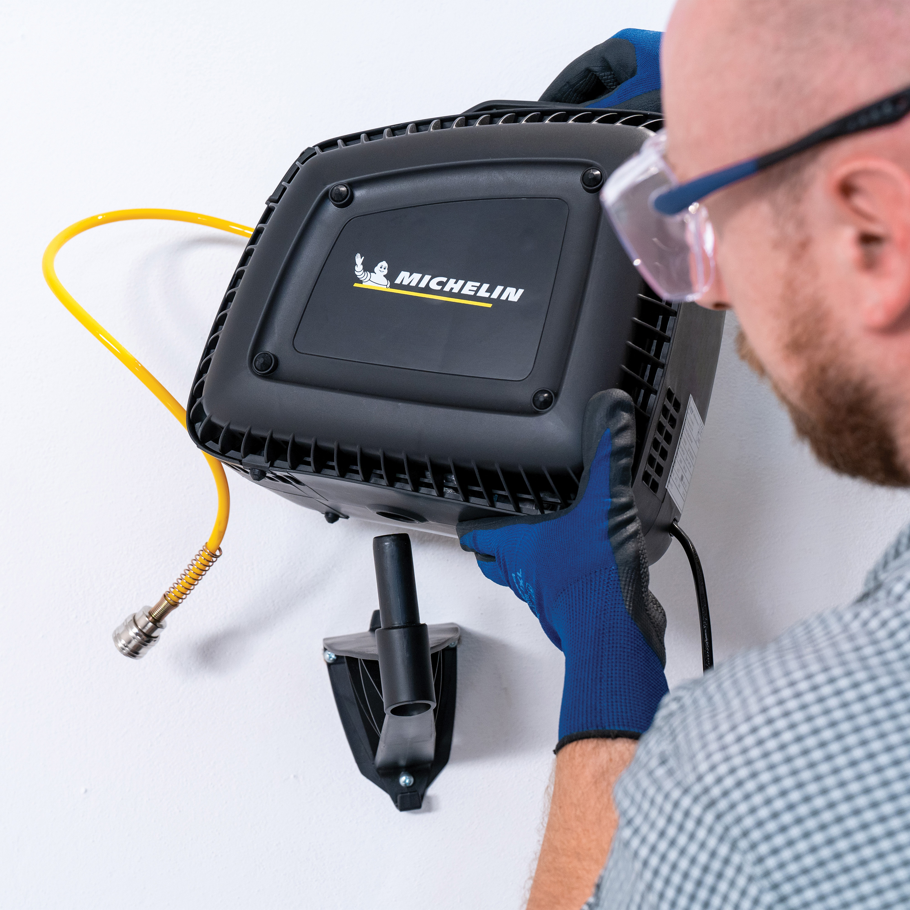 Compresseur d'air mural Michelin avec enrouleur automatique tuyau 7 mètres intégré avec kit gonflage
