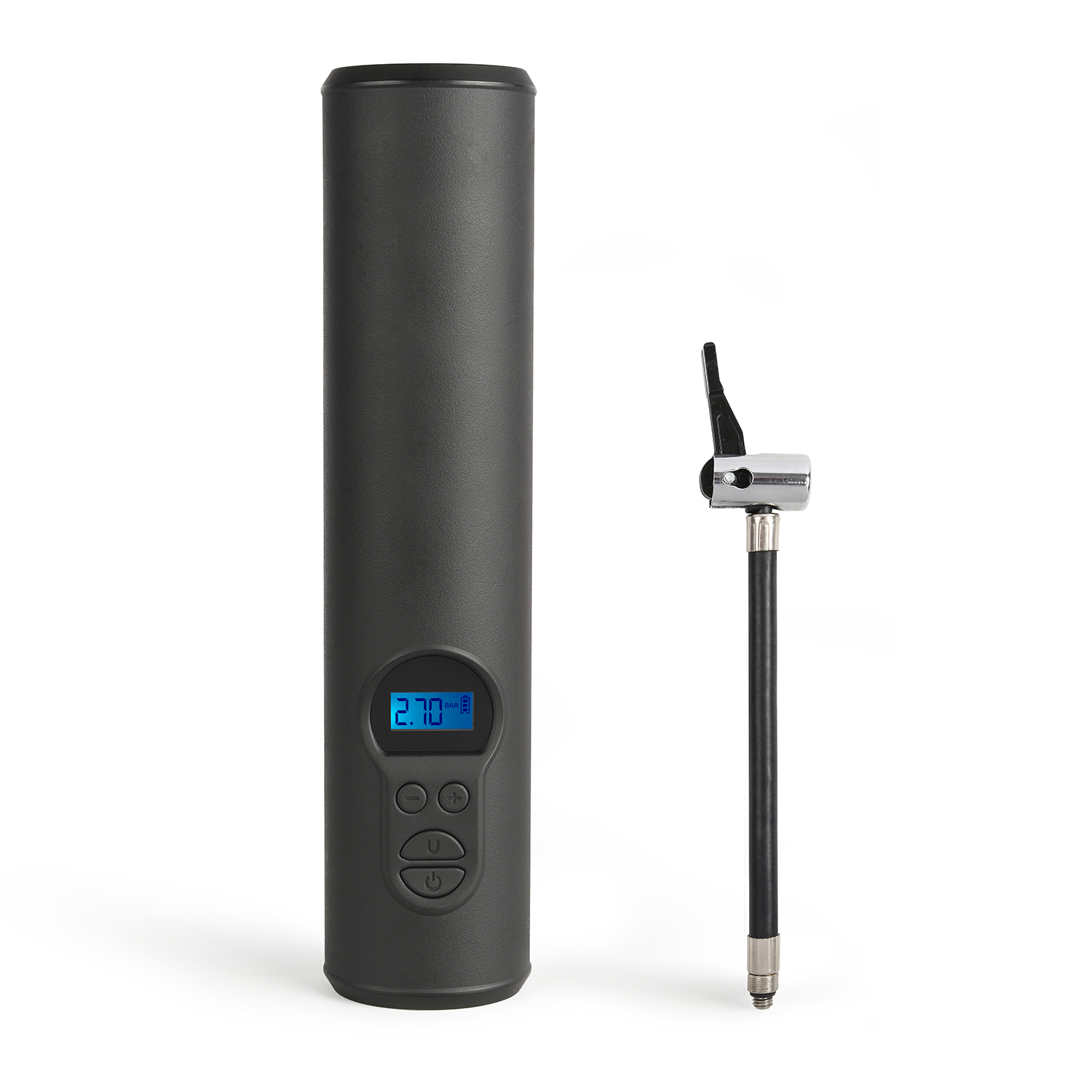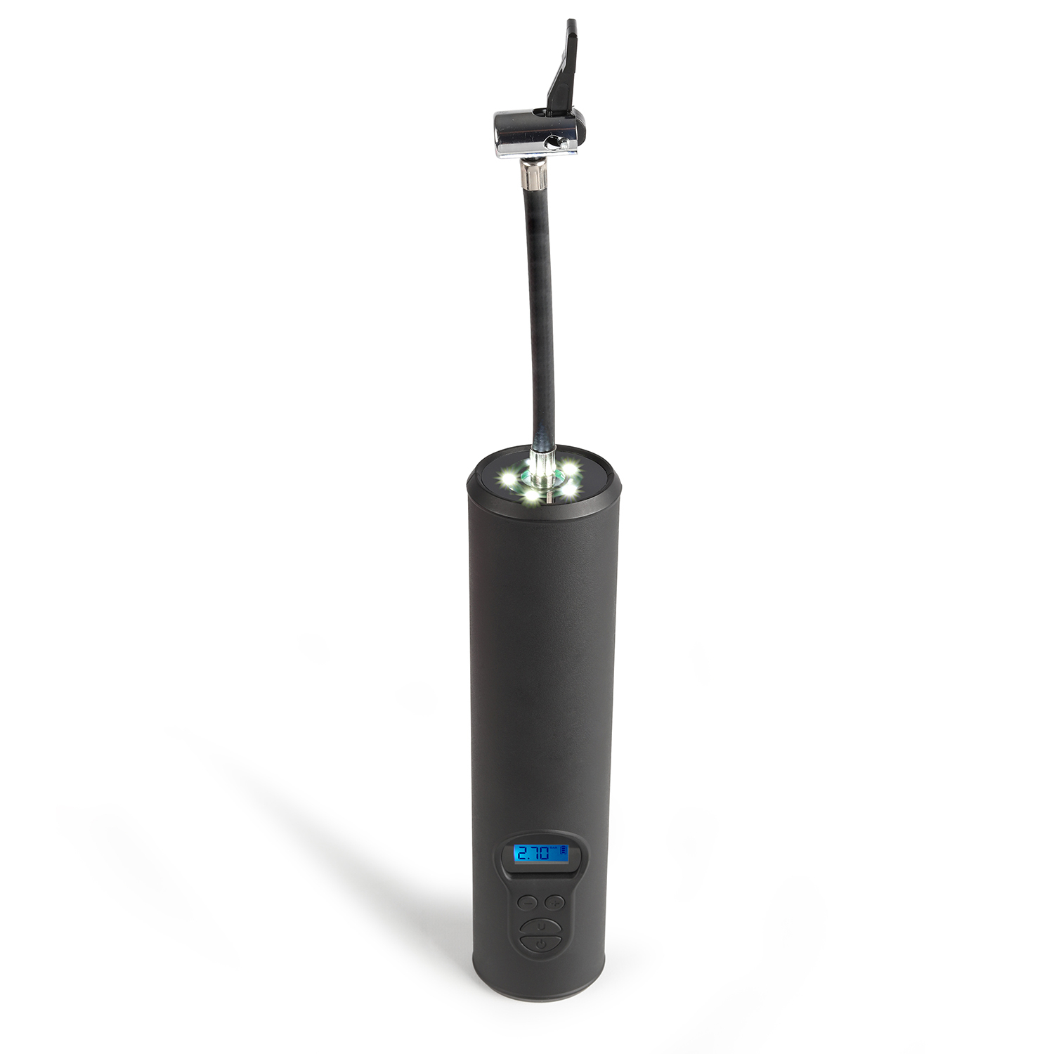 Accessoires inclus : tube de gonflage avec embout de gonflage, aiguille de gonflage, 2 adaptateurs de valve, câble de charge USB, pochette de transport
