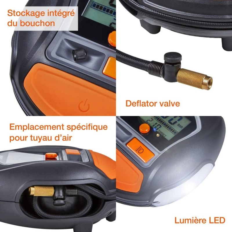 "Le compresseur portatif, OSRAM TYREinflate RAPID est un compresseur numérique rapide, efficace et efficace avec un affichage numérique éclairé pour des mesures de pression faciles et précises. Équipée d'une fonction d'arrêt automatique pour régler la pression désirée requise.Grâce à son réglage automatique, ce compresseur est incroyablement facile à manier. Rentrez simplement la pression désirée avec le bouton rotatif, cliquez pour régler puis appuyez sur start. Le mini compresseur TYREinflate RAPID s'arrête automatiquement dès que la pression correcte est atteinte.