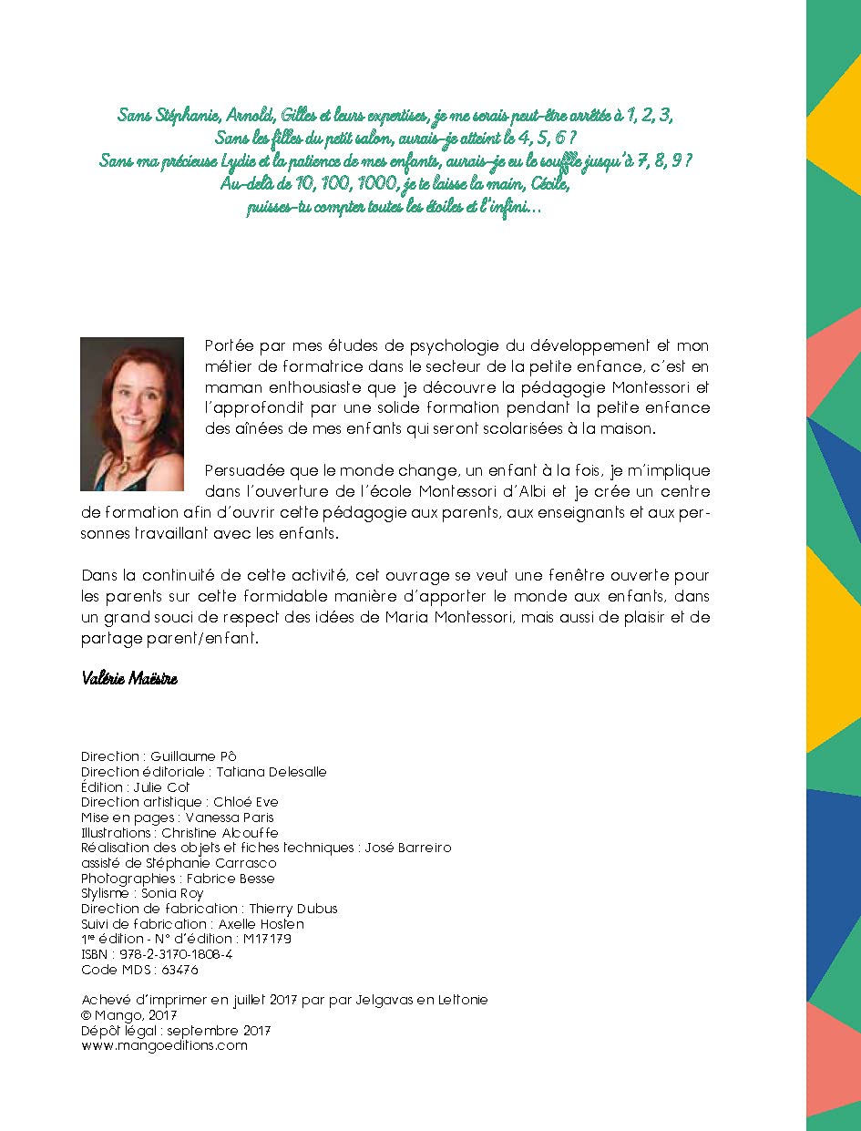 Élaboré par une enseignante et formatrice Montessori, le manuel pédagogique vous guidera dans toutes les étapes de la présentation du matériel, et vous permettra d’apporter à votre enfant l’aide dont il a besoin pour progresser seul.