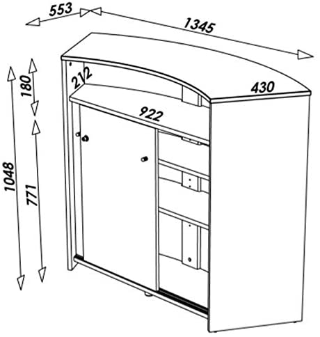 Ce comptoir de bar à 2 portes de couleur blanche avec imprimé drapeau Suisse de la collection Snack version 134 est parfait pour un intérieur moderne. Il peut être utilisé en tant que bar mais également comme comptoir de cuisine. Matière : structure et portes en panneaux de particules mélaminés, poignées PVC, repose pieds en métal peinture époxy Dimensions (Lxlxh) : 134,5 x 55,3 x 104,8 cm Dimensions de chaque porte (Lxh) : 49 x 76,5 cm Dimensions utiles de la niche centrale (Lxlxh) : 97,9/113,4 x 26,1/31 x 96,7 cm Hauteur de la niche : 18 cm 2 portes coulissantes avec serrure 2 tablettes réglables en hauteur 1 tablette fixe 1 repose pieds Livré démonté Garantie : 2 ans Fabriqué en France