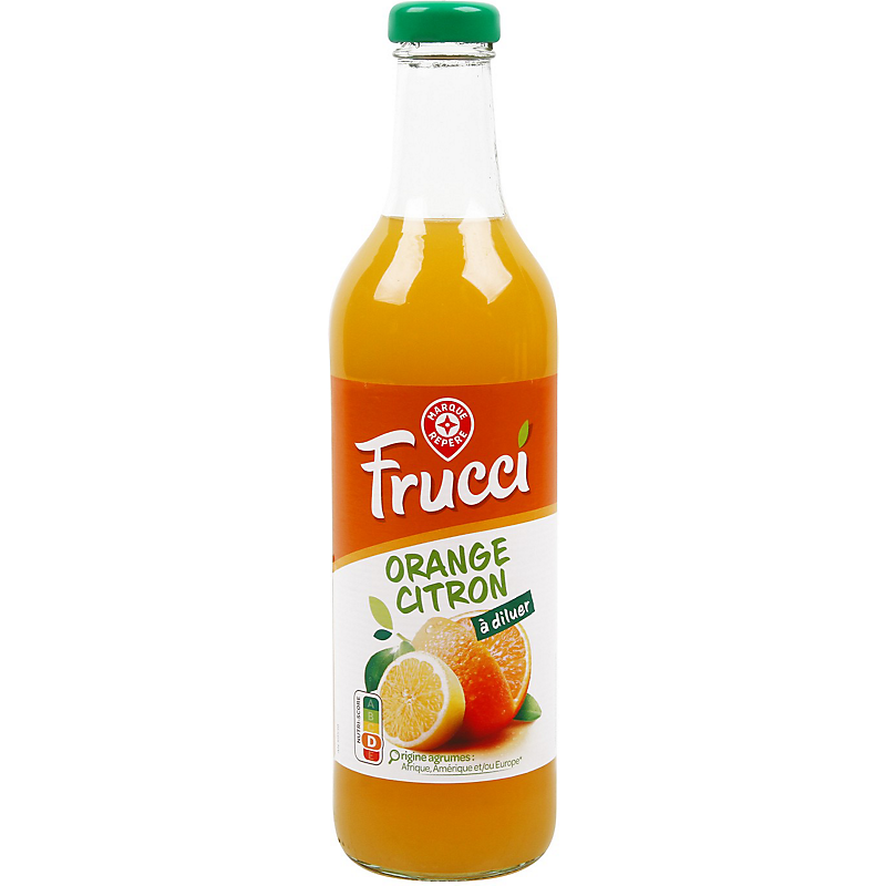 Spécialité à diluer aux jus de citron et d'orange à base de concentrés. FRUCCI
