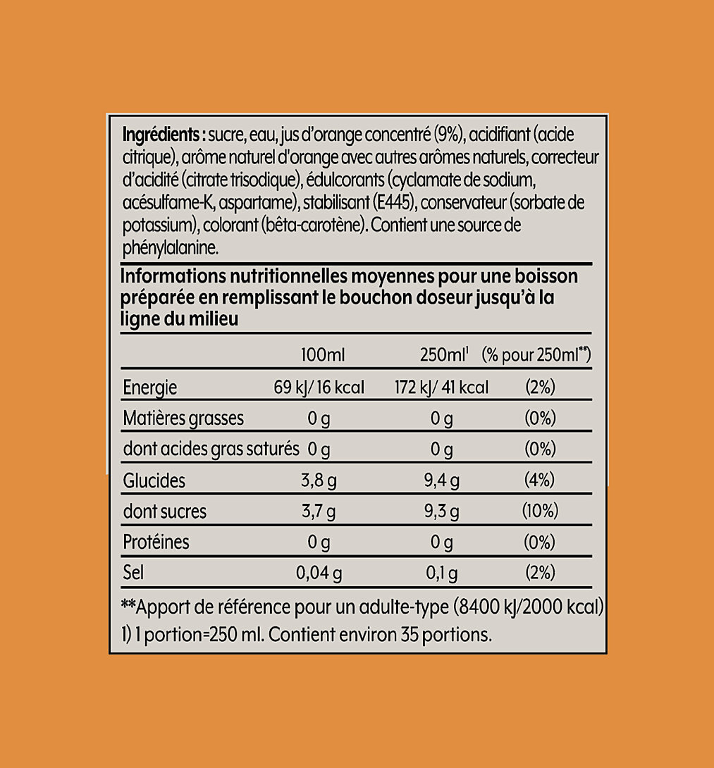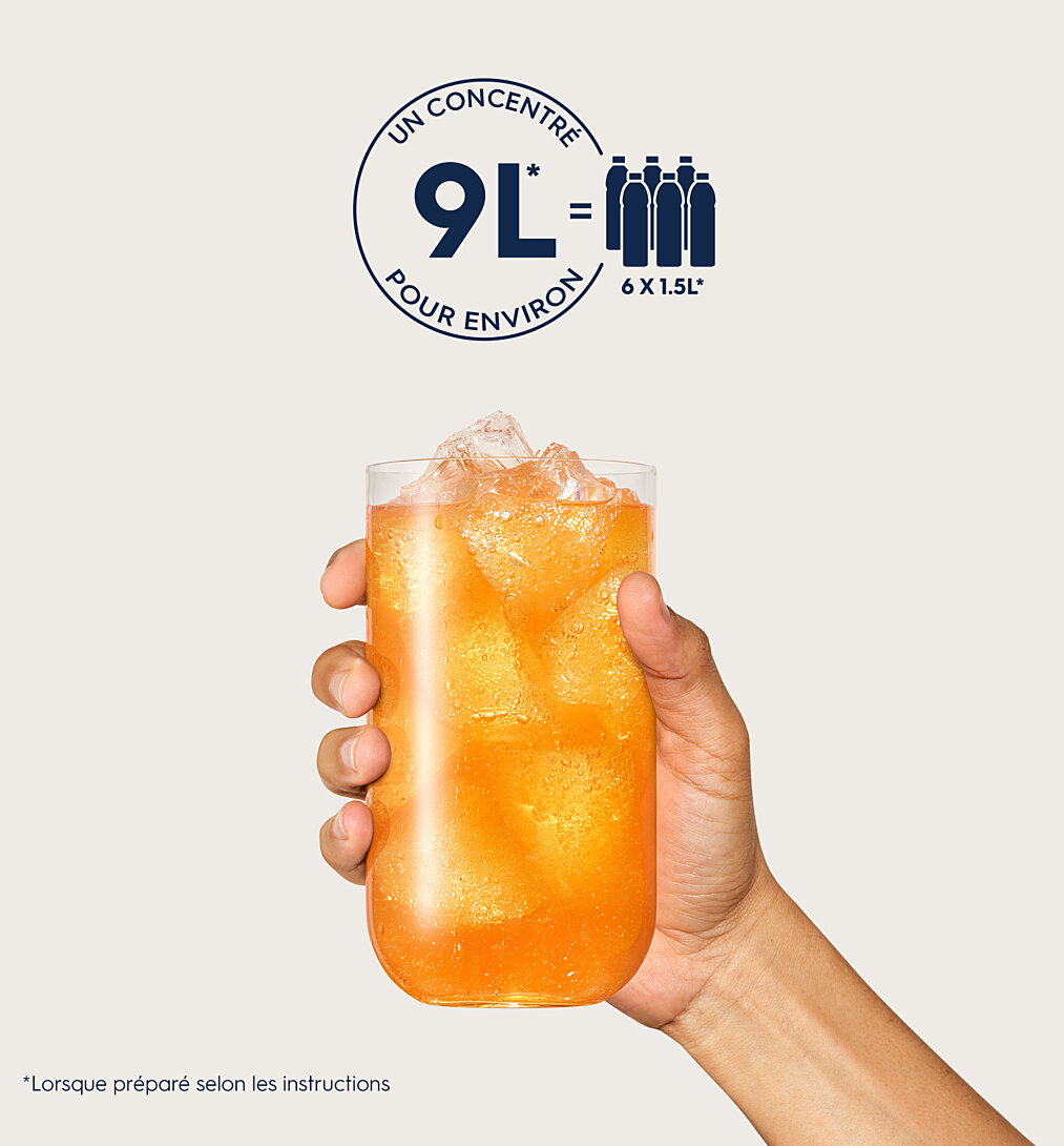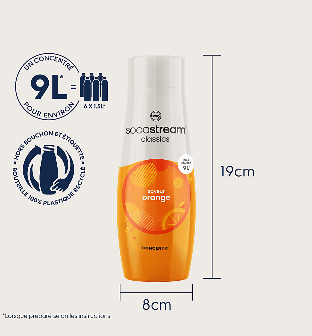 Le bonheur d’une orangeade faite chez soi Libérez le potentiel de votre SodaStream en transformant votre eau pétillante en boissons pour toutes les occasions. - 1 bouchon doseur, pour un résultat optimal - Contenance 440 ml - Fini la corvée des packs de bouteilles - 9 bouteilles sodastream grand modèle