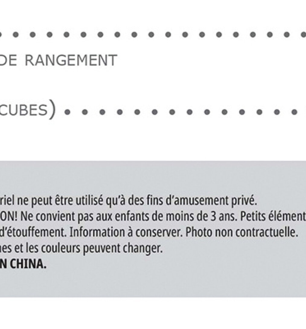 | Avertissements | ATTENTION! Ne convient pas aux enfants de moins de 3 ans. Petits éléments. Danger d’étouffement. Information à conserver. Photo non contractuelle. Les formes et les couleurs peuvent changer. Ce matériel ne peut être utilisé qu’à des fins d’amusement privé. |