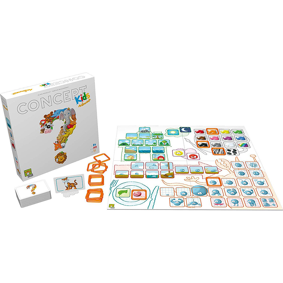 | Plus produit | Concept Kids Animaux est un jeu familial adapté pour les enfants dès 4 ans grâce à ses cartes illustrées et ses icônes : pas besoin de savoir lire ! Il permet une découverte ludique du monde animal à travers ses 110 cartes Animaux. Il est rapide et simple à appréhender : les explications ne prennent que quelques minutes ! |