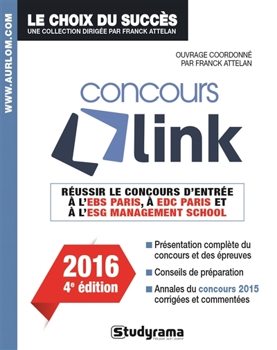 | Libellé | Concours link 2016 - réussir le concours d'entrée à l'ESG mangement school et à l'EBS Paris (Broché) |