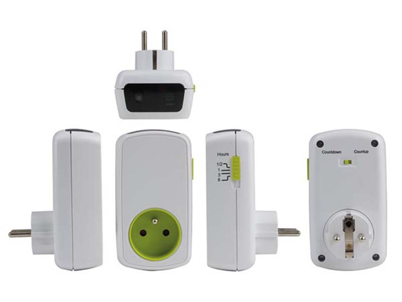 Minuteur électrique programmable à heure différéePermet la mise en marche/en arrêt à temps décalé des appareils comme par ex. la cafetière, les appareils de bureau, les couvertures chauffantes, les éclairages etc...-Préréglage de l'heure souhaitée 30min, 1h, 3h, 6h au moyen du bouton-poussoir situé sur le côté-Bouton marche/arrêt avec capteur sensoriel-Bouton-poussoir mode dual : OFF: les appareils branchés s'allume ou s'éteignent à l'heure demandée- Pas de changement nécessaire de l'installation domestique , il suffit de le brancher entre la prise murale et l'appareil, - par ex. une lampe, une cafetière-Terre française-alimentation: 230VCA/50Hz-Puissance max.: 3500W/16A-Dimensions (L x H x P): 62 x 120 x 40 mm (branché)-Poids: 140 g