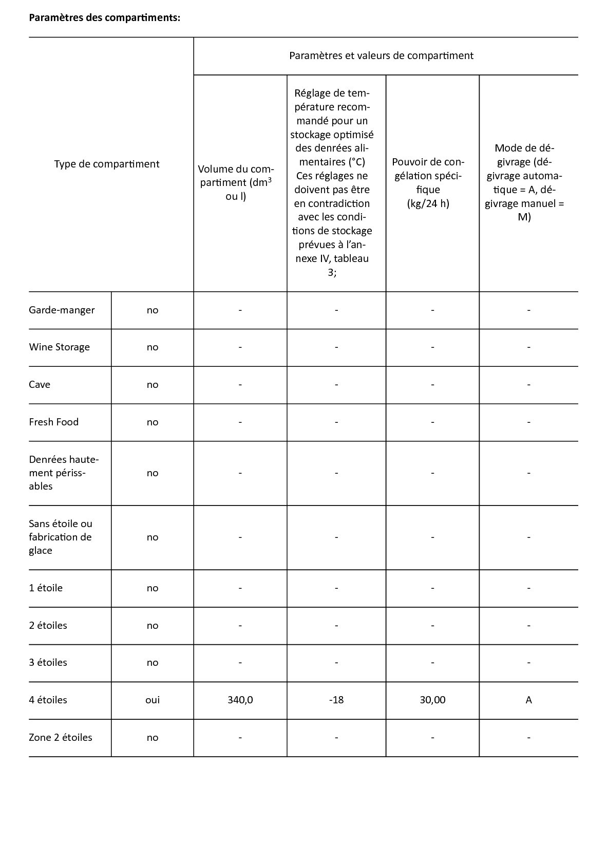| Nombre de clayettes | 5 |