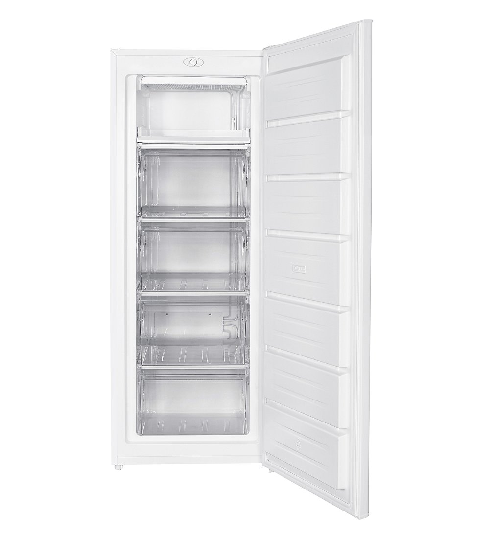 Congélateur rmoire 168 litres 1 bac coulissant + 4 tiroirs, classe E, blanc, porte réversible, poignée intégrée, froid statique