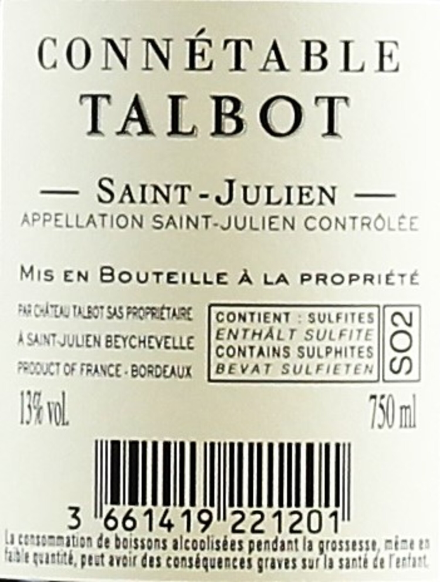 | Libellé | Connétable de Talbot, 2021 - Saint-Julien AOP - Rouge - 75 cl |