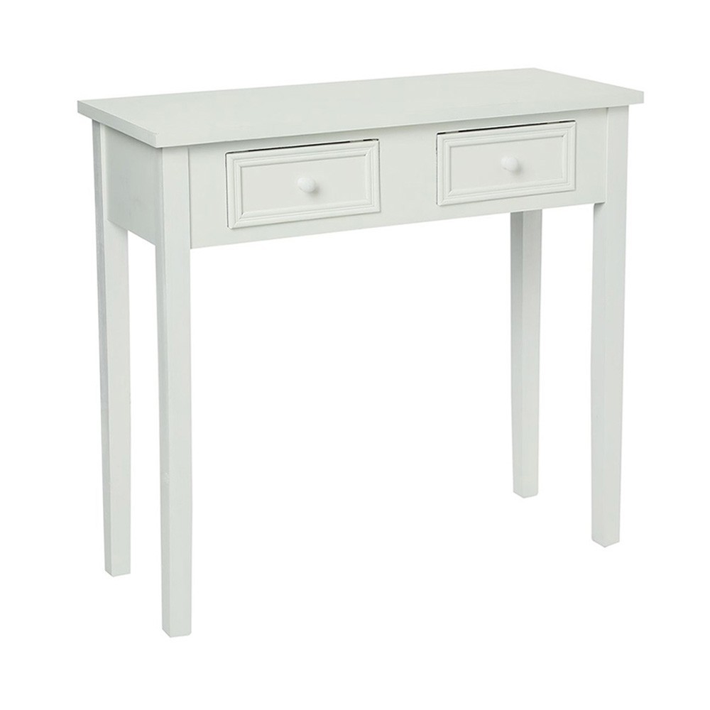 La console 2 tiroirs blanche "charme" vous offrira un espace de rangement supplémentaire à votre entrée tout en vous garantissant un charme irrésistible à votre maison.