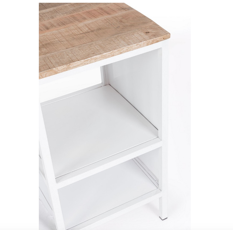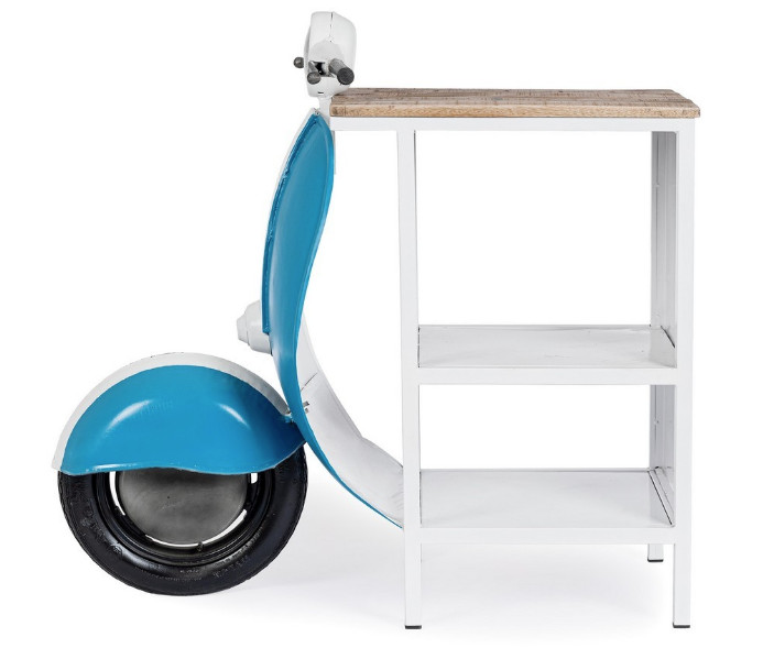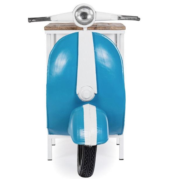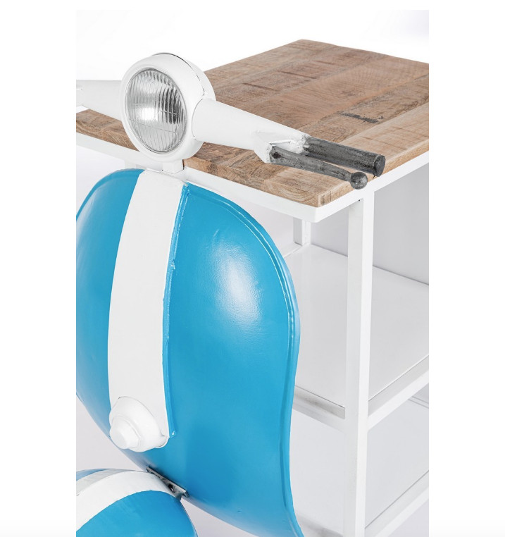 Libellé Console bar Vespa acier bleu et blanc mat avec étagere 104cm