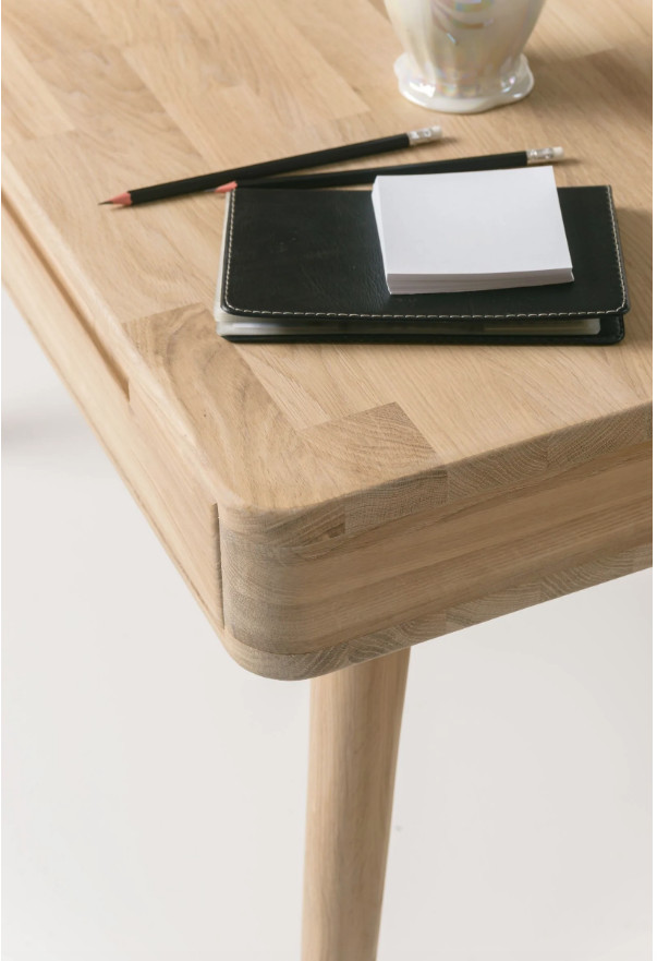 Elle allie parfaitement fonctionnalité et design avec des lignes pures. Vous pouvez vous en servir comme console ou d'un bureau. Elle dispose d'un tiroir qui vous permet de ranger tout ce dont vous avez besoin. La finition parfaite du bois de chêne blanchi fait de chacune des pièces de cette série une pièce unique. Votre coin de travail idéal ! Il ne s'agit pas de contreplaqué ou de bois reconstitué comme l'on peut trouver la plupart du temps sur le marché. Dimensions: L 110 x H 75 x P 43 cm Matière : chêne massif blanchi Coloris : bois clair Finition: mate à huile BIO Nombre de tiroir(s): 1 Poids : 27 kg Garantie 5 ans - Fabrication Européenne Assemblage livré monté Entretien : facile à nettoyer avec un chiffon doux ou légèrement humide. Ce meuble est fabriqué en Europe selon des réglementations strictes FSC (organisation qui élabore des normes et des politiques pour la gestion durable des forêts)