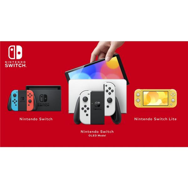 Ce pack de jeu Nintendo Switch contient : - Console Nintendo Switch modèle OLED bleu néon / rouge néon - 1 manette Joy-Con droite rouge néon - 1 manette Joy-Con gauche bleu néon 1 support Joy-Con - 1 station d'accueil Nintendo Switch - 1 câble HDMI - 1 adaptateur secteur Nintendo Switch - 1 paire de dragonnes Joy-Con Une nouvelle venue va bientôt rejoindre la gamme Nintendo Switch : la Nintendo Switch (modèle OLED) possède des dimensions proches de celles de la Nintendo Switch mais dispose d'un écran OLED plus grand aux couleurs intenses et aux contrastes élevés. Elle dispose aussi d'un large support ajustable pour le jeu en mode sur table, d'une nouvelle station d'accueil avec port Ethernet pour un jeu en ligne stable, de 64 Go de mémoire interne et de haut-parleurs intégrés proposant un audio amélioré pour les modes nomades (portable et sur table).