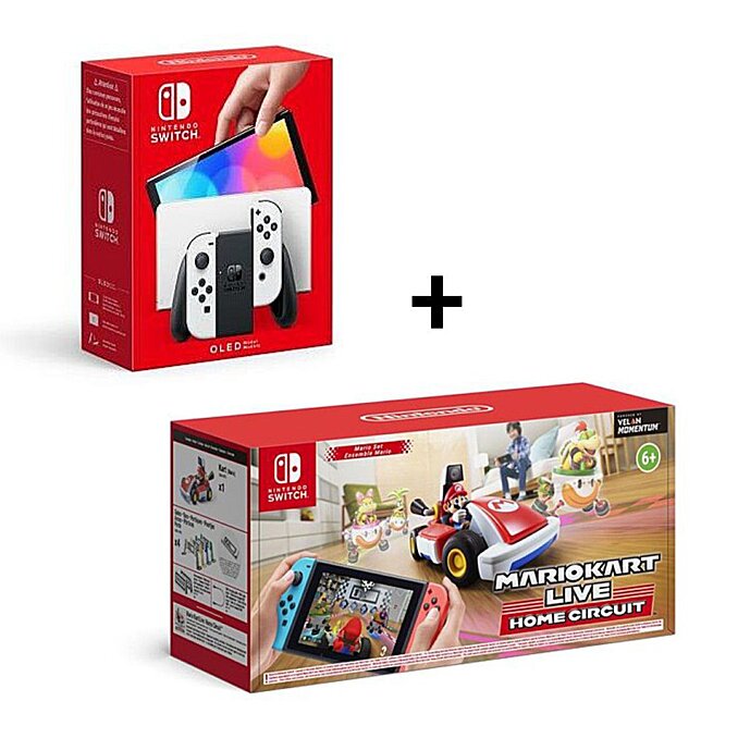 | Libellé | Console Nintendo Switch (modèle OLED) avec station d'accueil et manettes Joy-Con blanches + Mario Kart Live : Home Circuit / Ensemble Mario |