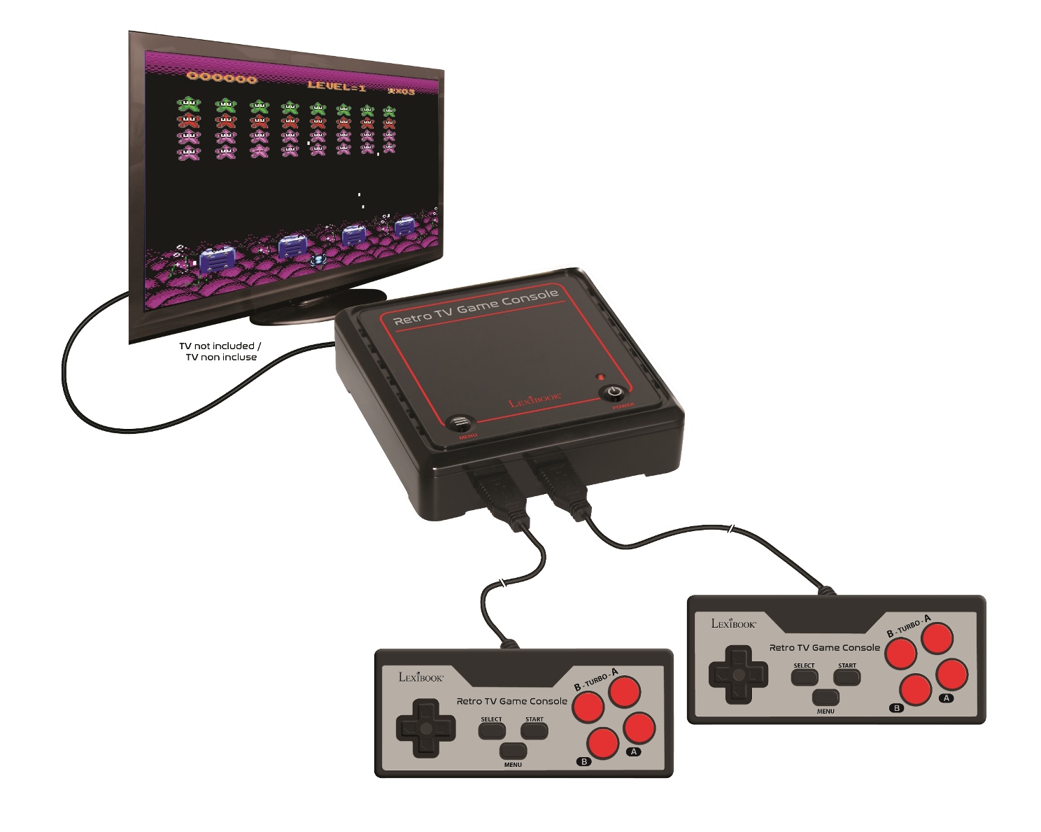 Console de jeux TV rétro gaming avec 300 jeux 8 à 16 bits incluant les plus grands classiques du jeu vidéo ! Jouez à des jeux de moto, voitures, course, sport, arcade, action, et bien d'autres à découvrir pour toute la famille Multijoueur : profitez de jeux 2 joueurs grâce aux 2 manettes incluses. Chaque manette dispose d’un long câble de 175 cm pour ne pas jouer trop près de l’écran. Se branche facilement à votre TV via le câble AV fourni. Contenu de la boîte : 1 console + 2 manettes + 1 câble AV (connexion RCA) + 1 adaptateur secteur + 1 manuel d'instructions. TV non incluse.