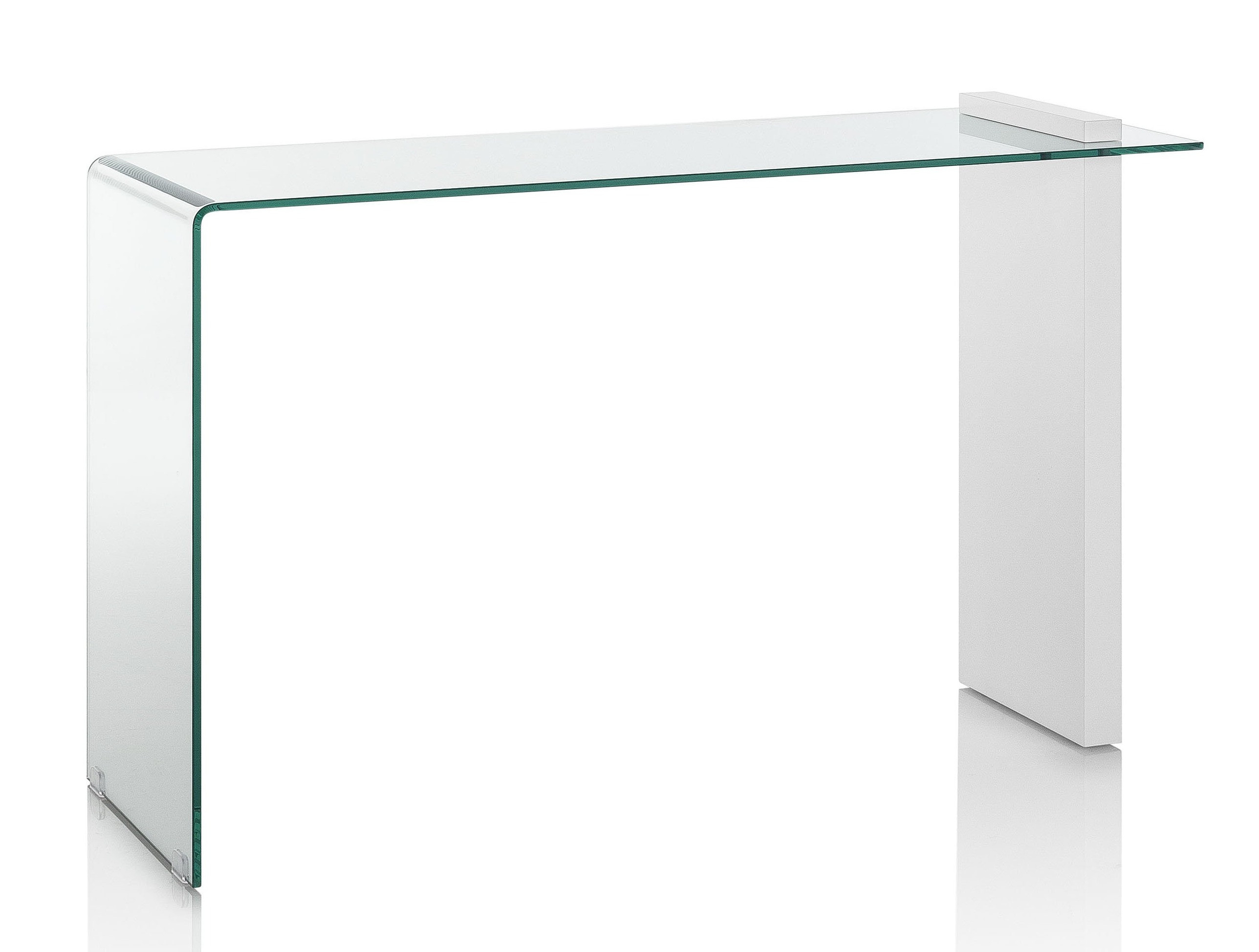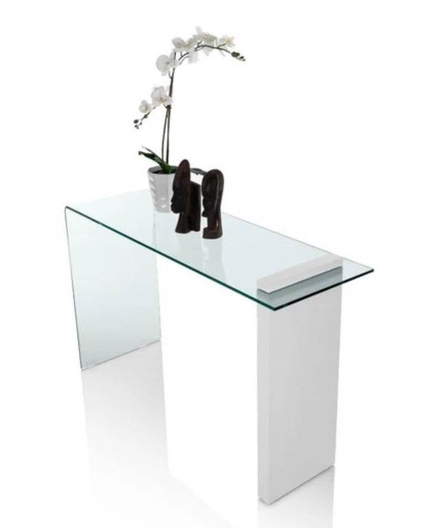Libellé Console verre transparent et pied bois blanc Luni L 120cm