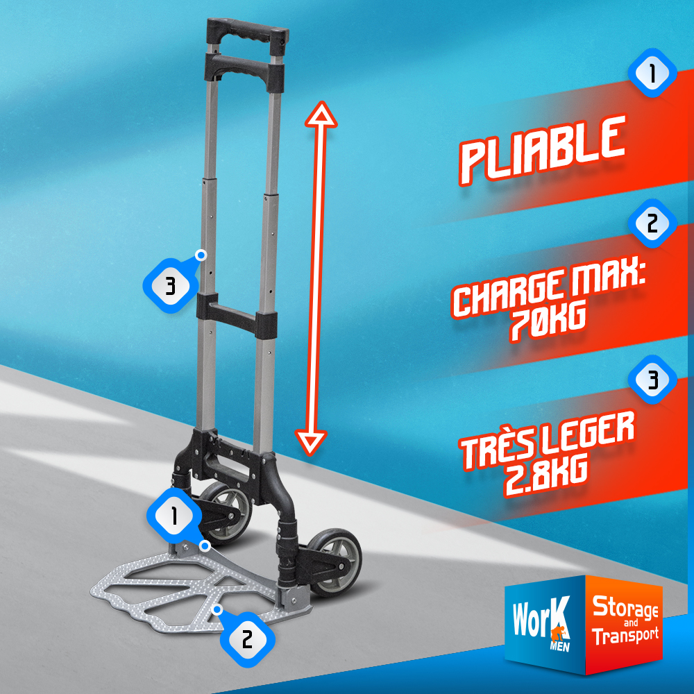 De plus, ce diable universel est très facile à ranger car il est pliable et peut être déplacé facilement car il ne pèse que 2,8 kg.