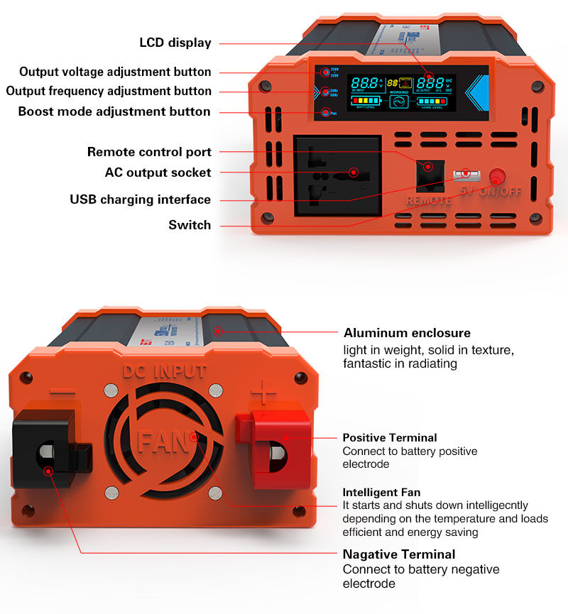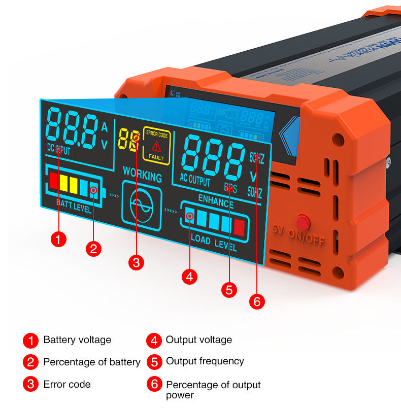 Libellé Convertisseur de Tension 12V 220V Pur Sinus 1000 Watts avec afficheur