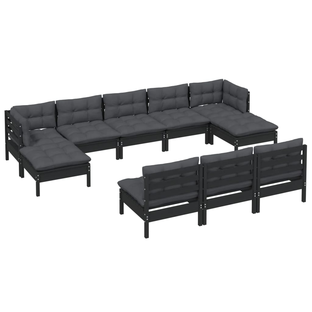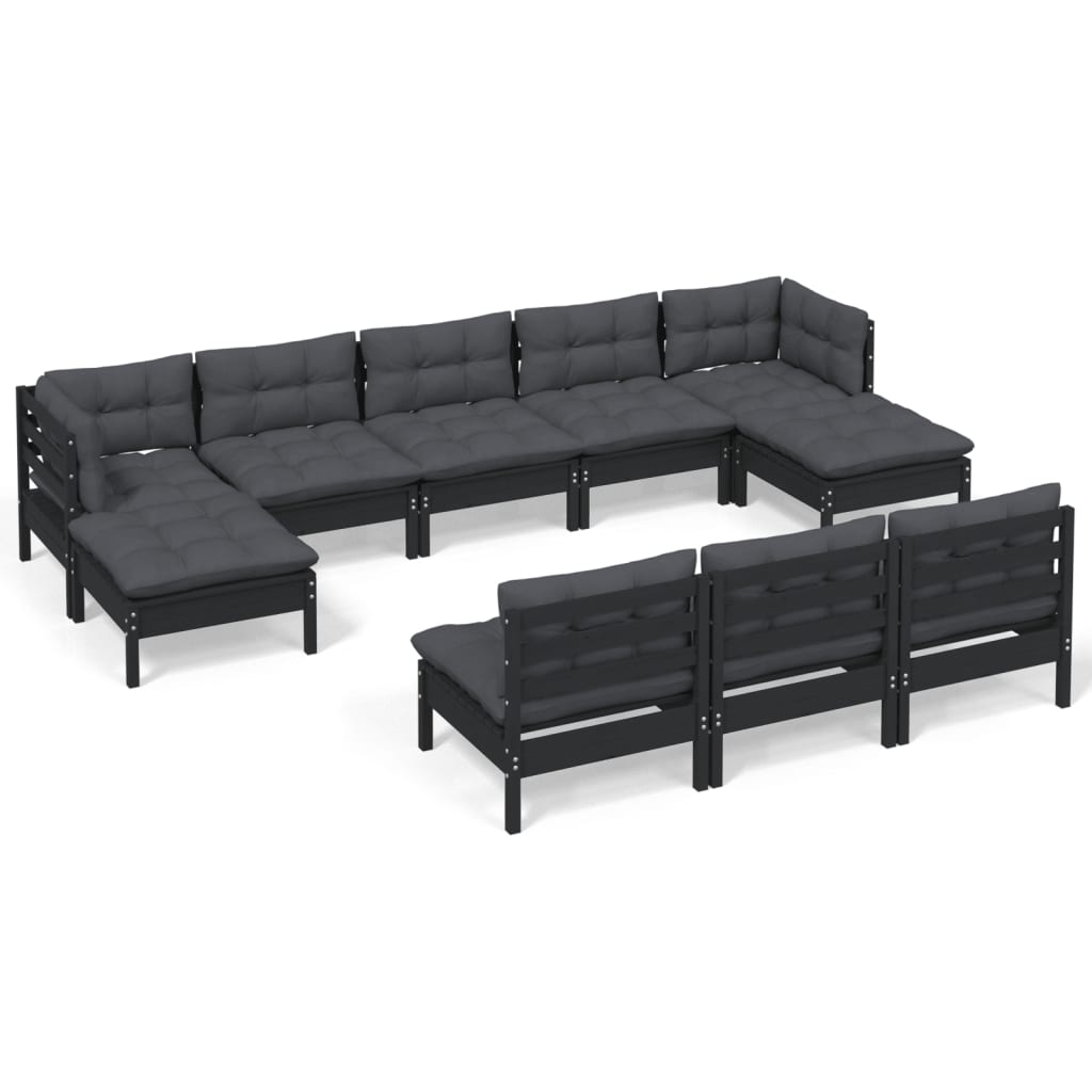 Convivialité et détente avec ce salon de jardin 10 pièces avec coussins noir bois de pin - Noir