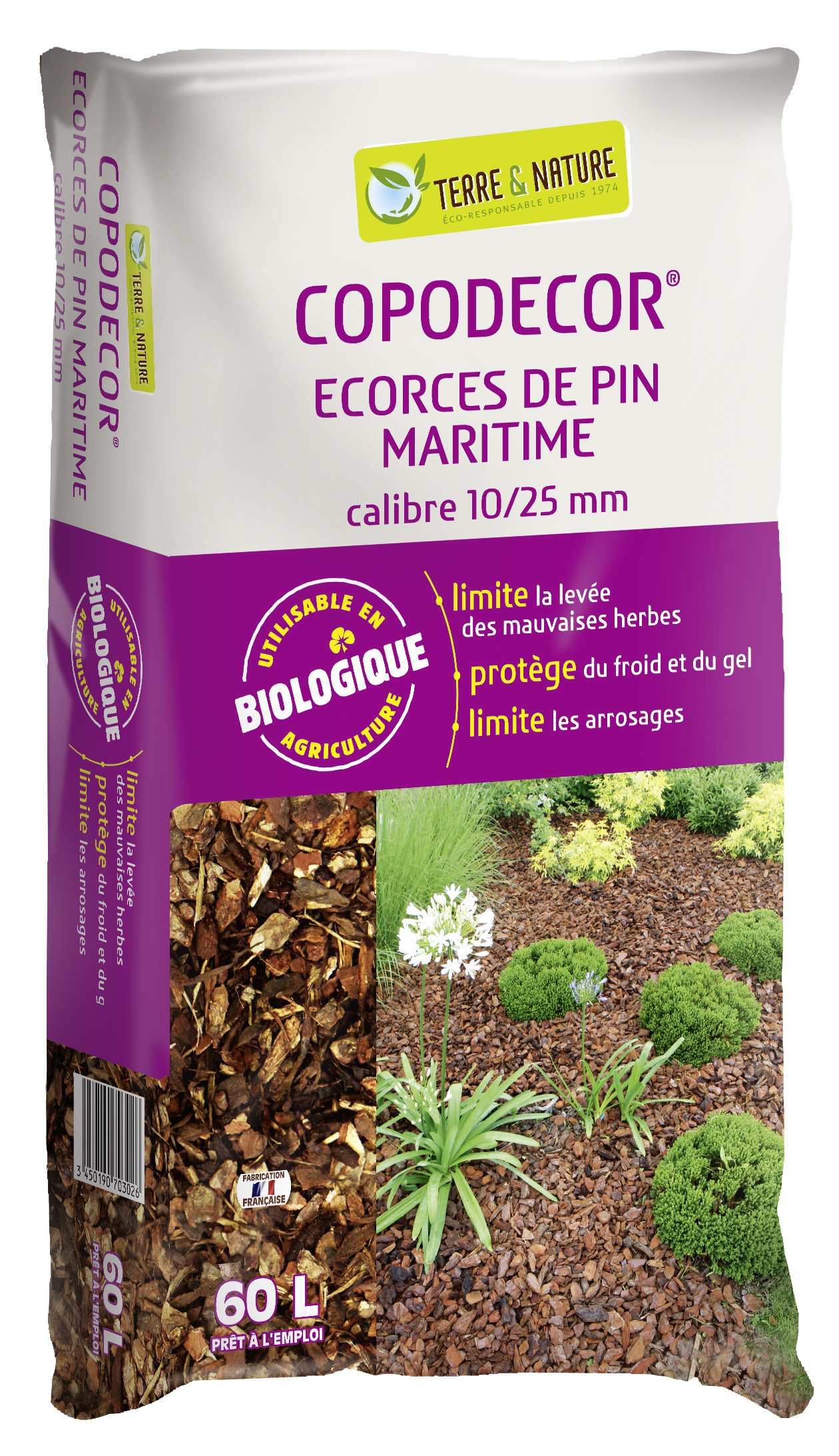 | Libellé | COPODECOR ECORCES DE PIN 10/25 mm 60 LITRES |