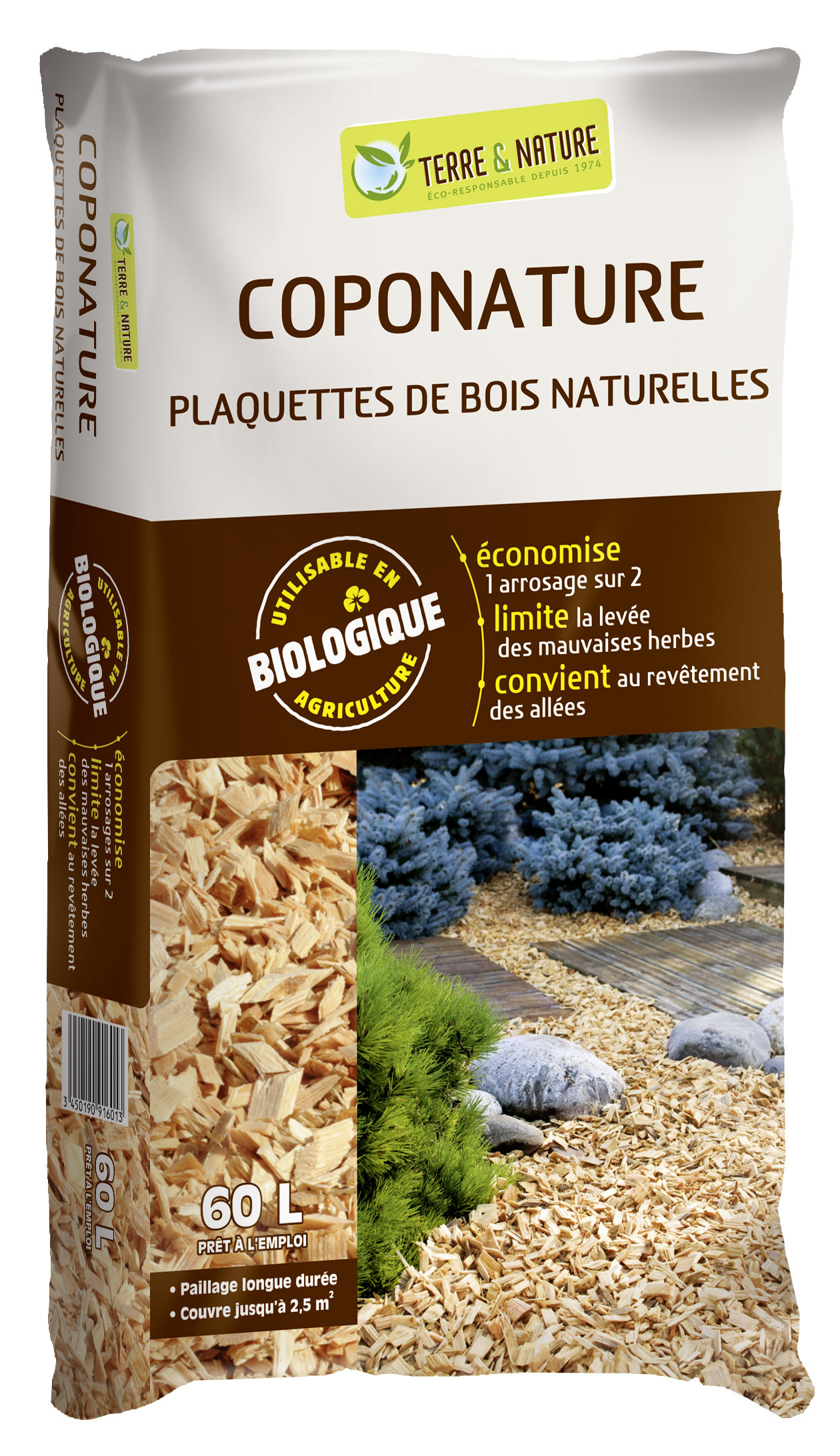 Coponature – Plaquettes au pH Neutre. Ces plaquettes de bois sans aucun traitement chimique sont issues de zones forestières certifiées PEFC. Dotées d’un pH neutre, elles conviennent pour le paillage de masse des arbres, arbustes, rosiers et jeunes plants.