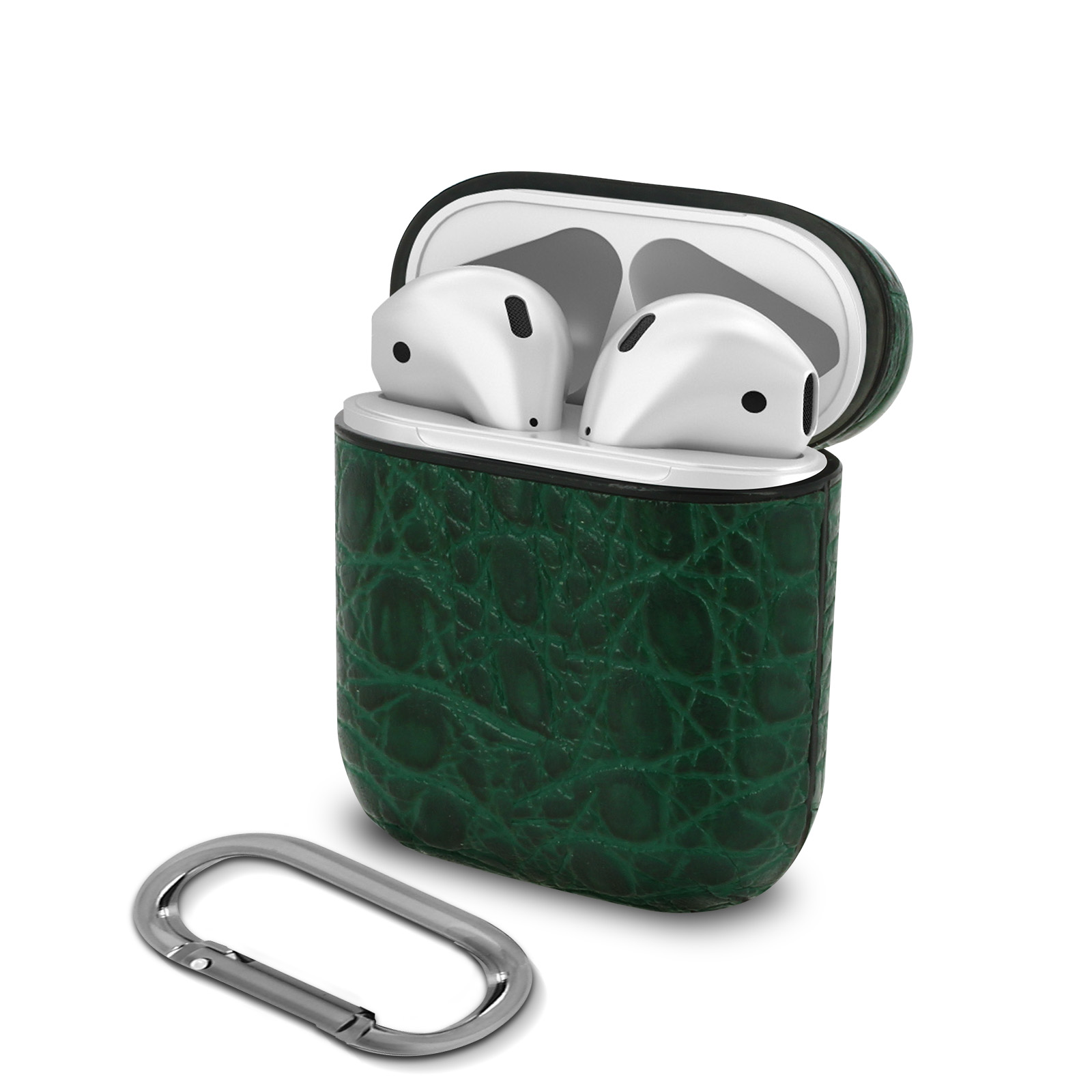 Coque AirPods Aspect Cuir Croco Mousqueton Magnétique Devia Lux Series Vert