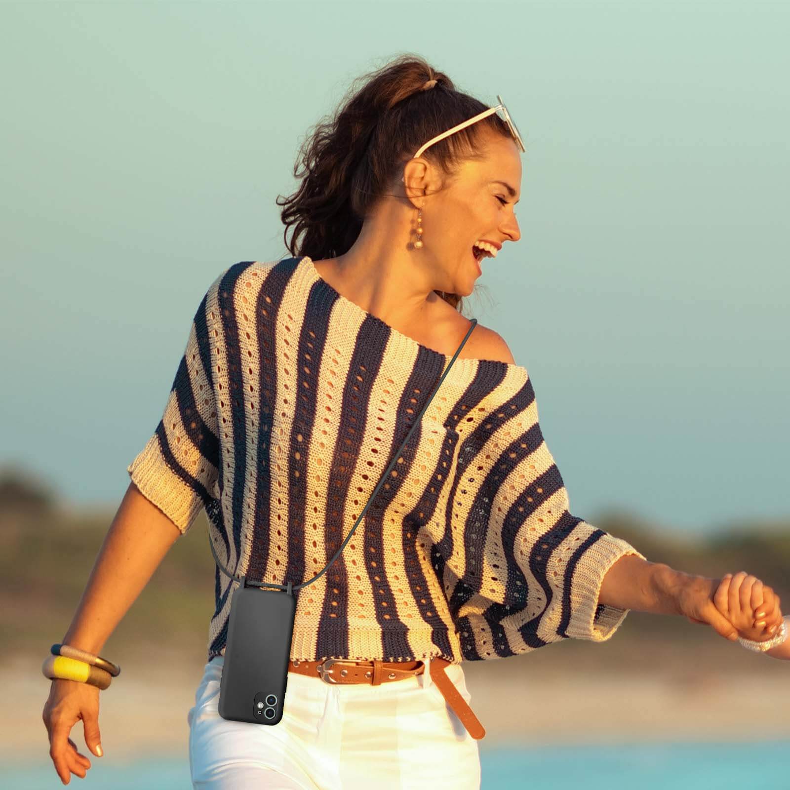 Coque Cordon iPhone 11 Semi-rigide Lanière Tour du Cou 80cm Noir