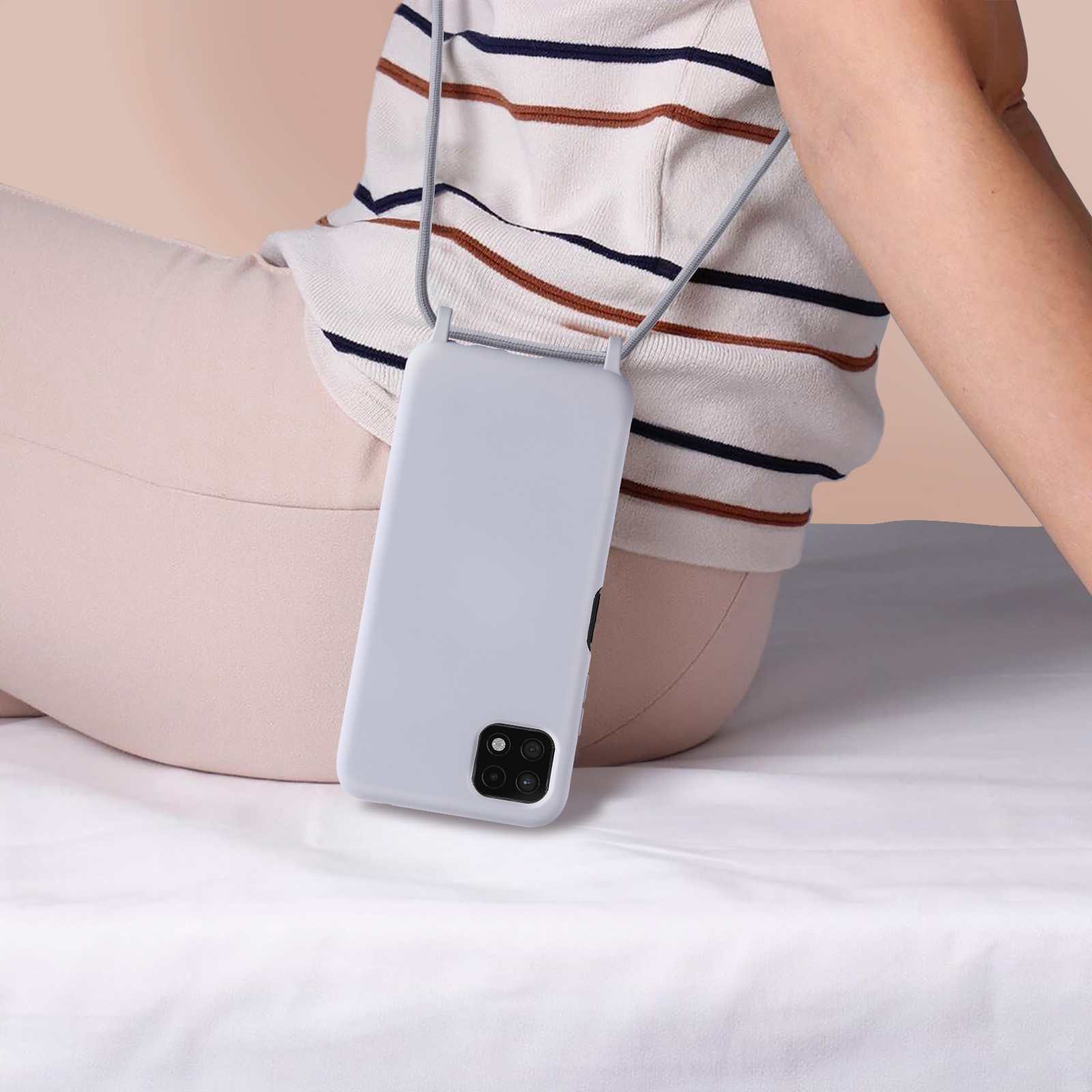 Coque avec corde Samsung Galaxy A22 5G. Cordon nylon tressé ajustable de 80cm de long, fonction tour du cou ou bandoulière. Coque semi-rigide en polycarbonate + silicone gel. Bords écran et caméra rehaussés. Fonctions accessibles, boutons redessinés.