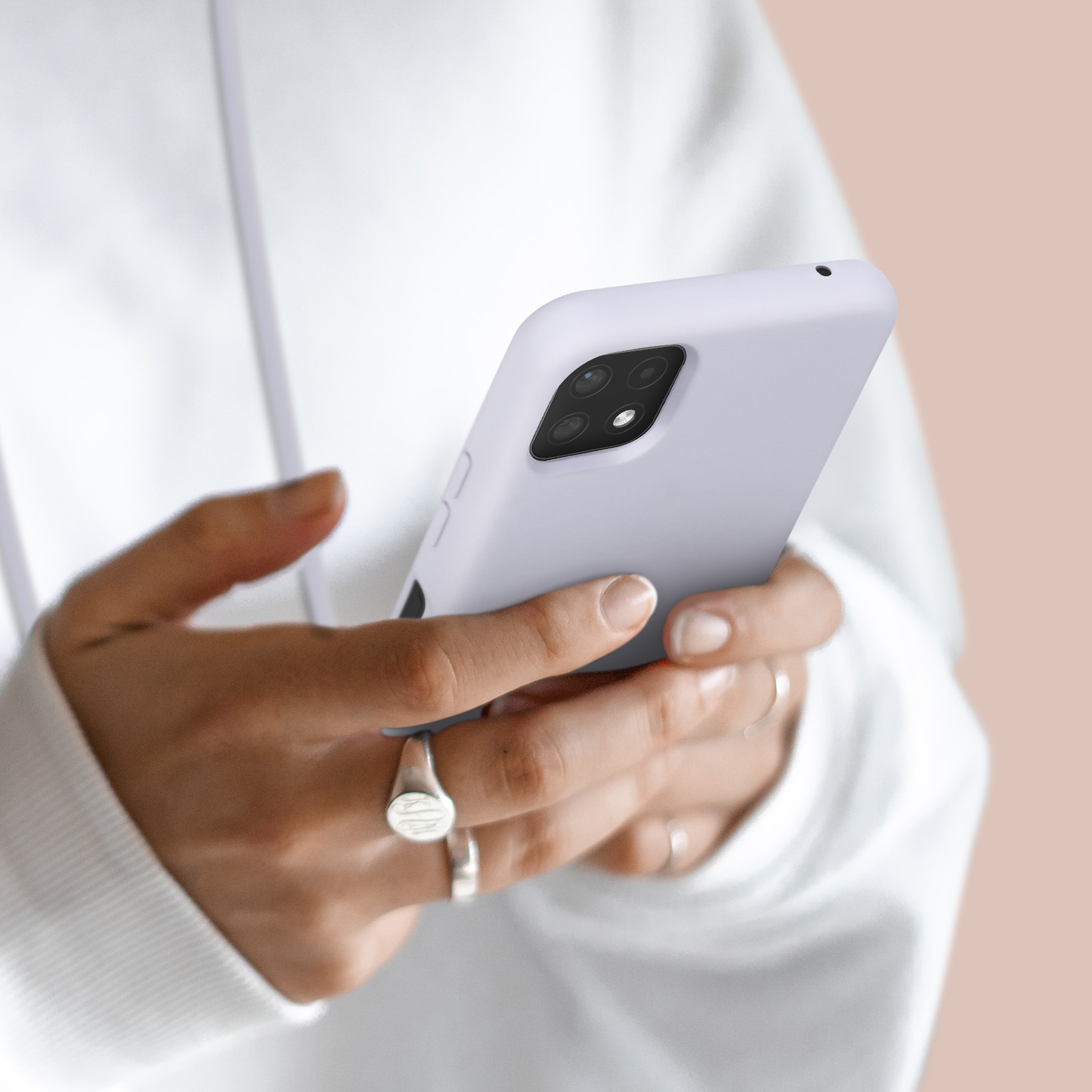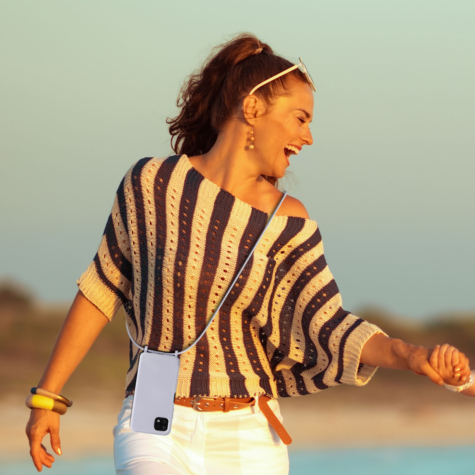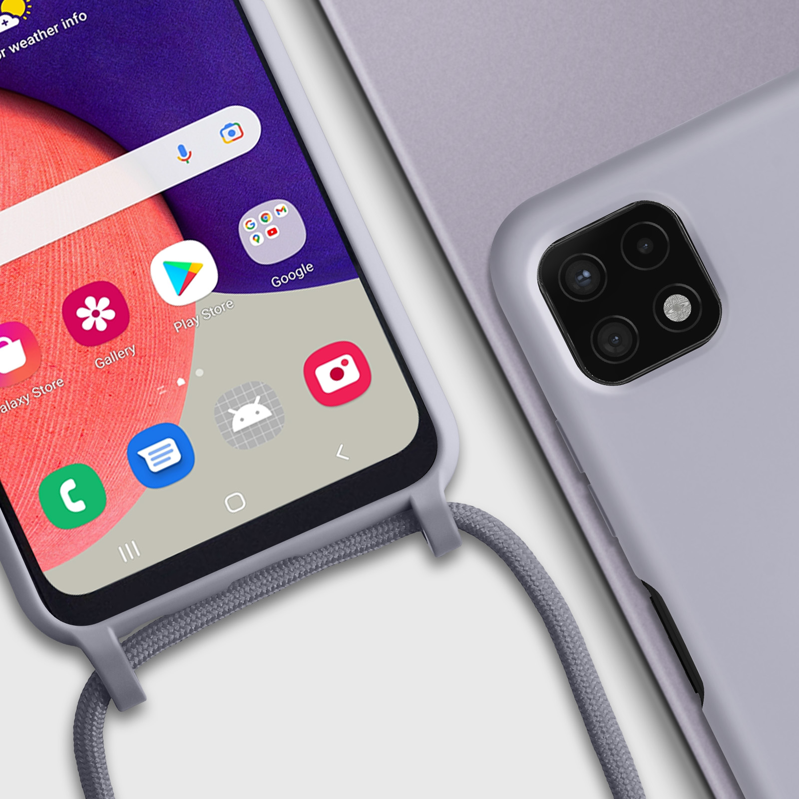Coque Cordon Samsung Galaxy A22 5G Semi-rigide Lanière Tour du Cou 80cm Violet