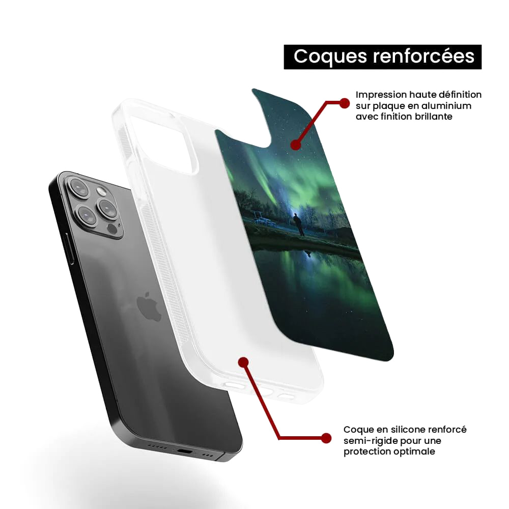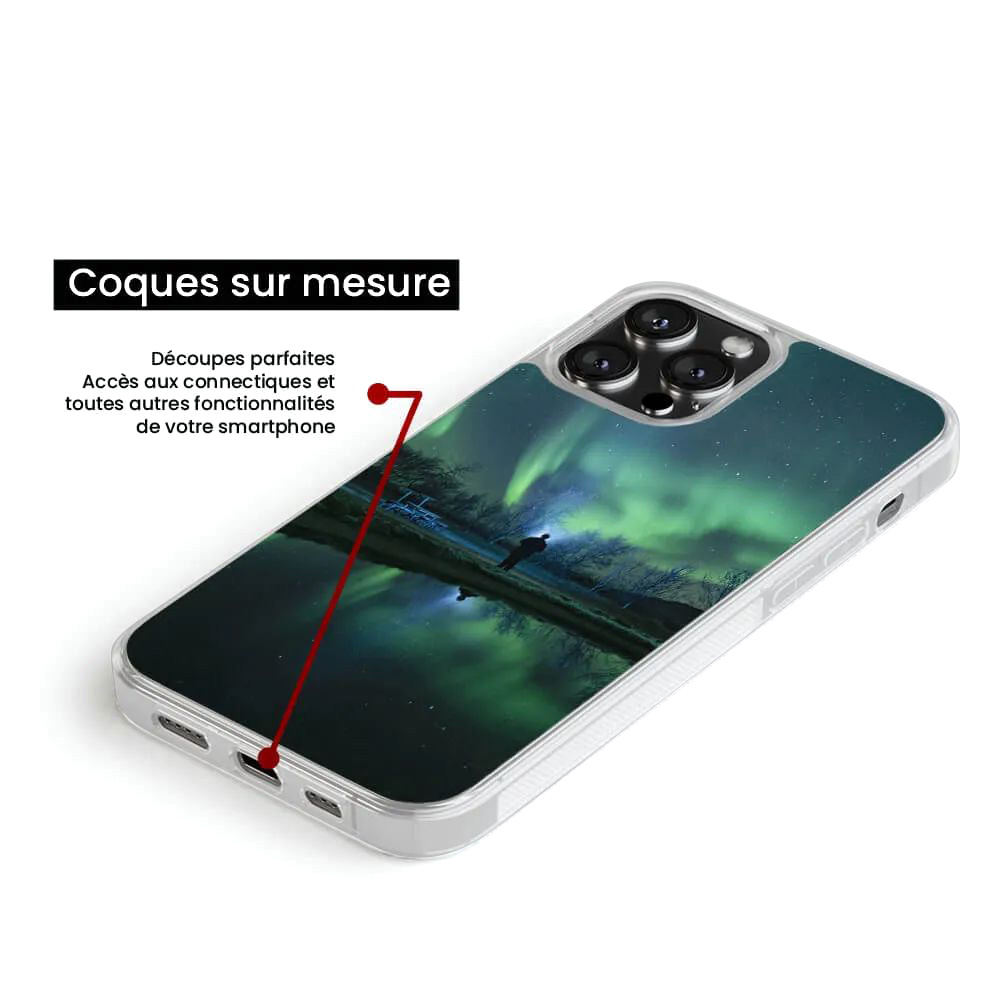 Coque silicone renforcé pour Apple iPhone 13 – Impression photo HD sur plaque métal – Protection antichoc en silicone TPU souple. Protégez et personnalisez votre smartphone avec cette coque de qualité supérieure, conçue spécialement pour le modèle Apple iPhone 13. Grâce à son impression par sublimation sur plaque métal, le visuel aurores boreales ressort avec une qualité photo exceptionnelle, pour un rendu haut de gamme et durable. Coque ajustée sur-mesure : compatible Apple iPhone 13 – accès total aux boutons, connecteurs et recharge sans fil. Impression brillante sur métal : design ultra net, couleurs éclatantes, résistantes à l’usure. Protection renforcée : silicone TPU absorbant les chocs, bords surélevés pour écran et appareil photo. Installation facile : matière souple, se retire sans abîmer l’appareil. Produit imaginé et expédié depuis la France – fabrication rapide et SAV réactif. 1001 Coques, expert de la personnalisation mobile, vous propose des protections de qualité professionnelle pour sublimer et sécuriser votre téléphone
