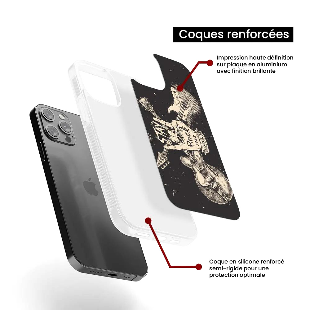 Coque silicone renforcé pour Samsung Galaxy S21 – Impression photo HD sur plaque métal – Protection antichoc en silicone TPU souple. Protégez et personnalisez votre smartphone avec cette coque de qualité supérieure, conçue spécialement pour le modèle Samsung Galaxy S21. Grâce à son impression par sublimation sur plaque métal, le visuel stay rock ressort avec une qualité photo exceptionnelle, pour un rendu haut de gamme et durable. Coque ajustée sur-mesure : compatible Samsung Galaxy S21 – accès total aux boutons, connecteurs et recharge sans fil. Impression brillante sur métal : design ultra net, couleurs éclatantes, résistantes à l’usure. Protection renforcée : silicone TPU absorbant les chocs, bords surélevés pour écran et appareil photo. Installation facile : matière souple, se retire sans abîmer l’appareil. Produit imaginé et expédié depuis la France – fabrication rapide et SAV réactif. 1001 Coques, expert de la personnalisation mobile, vous propose des protections de qualité professionnelle pour sublimer et sécuriser votre téléphone
