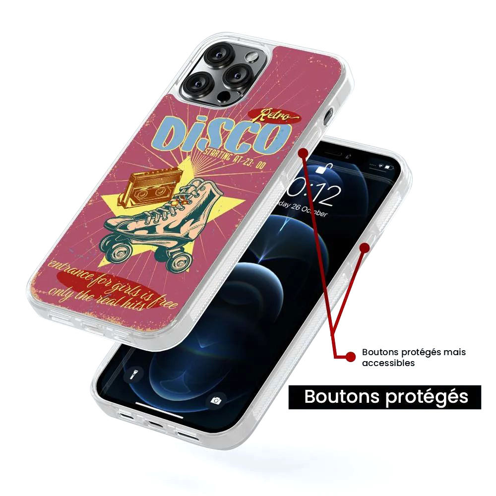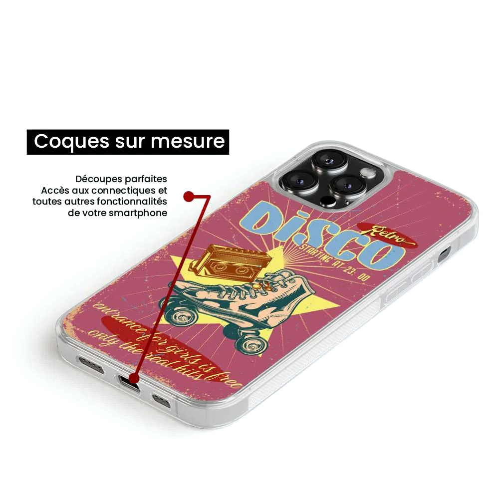 Coque silicone renforcé pour Samsung Galaxy S22 – Impression photo HD sur plaque métal – Protection antichoc en silicone TPU souple. Protégez et personnalisez votre smartphone avec cette coque de qualité supérieure, conçue spécialement pour le modèle Samsung Galaxy S22. Grâce à son impression par sublimation sur plaque métal, le visuel retro disco ressort avec une qualité photo exceptionnelle, pour un rendu haut de gamme et durable. Coque ajustée sur-mesure : compatible Samsung Galaxy S22 – accès total aux boutons, connecteurs et recharge sans fil. Impression brillante sur métal : design ultra net, couleurs éclatantes, résistantes à l’usure. Protection renforcée : silicone TPU absorbant les chocs, bords surélevés pour écran et appareil photo. Installation facile : matière souple, se retire sans abîmer l’appareil. Produit imaginé et expédié depuis la France – fabrication rapide et SAV réactif. 1001 Coques, expert de la personnalisation mobile, vous propose des protections de qualité professionnelle pour sublimer et sécuriser votre téléphone
