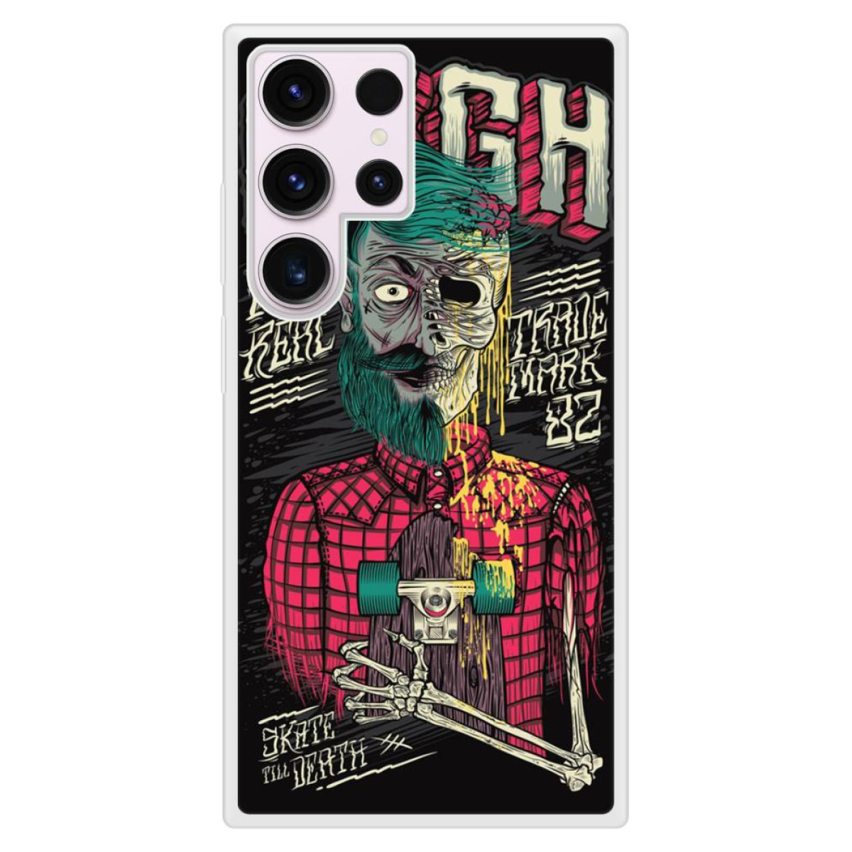 Coque en silicone renforcé imprimée compatible Samsung Galaxy S23 Ultra Skull Urgh