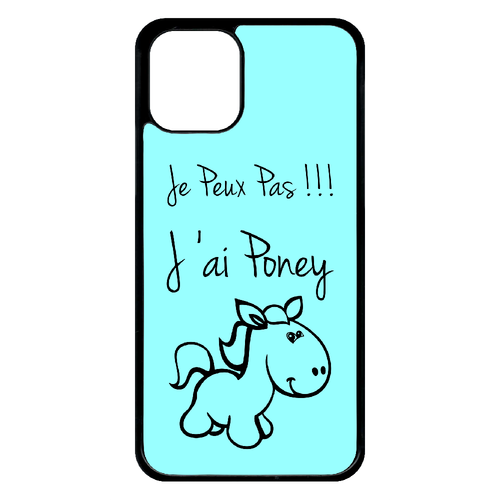 Libellé coque iphone 11 pro - citation poney turquoise - plastique - bord noir