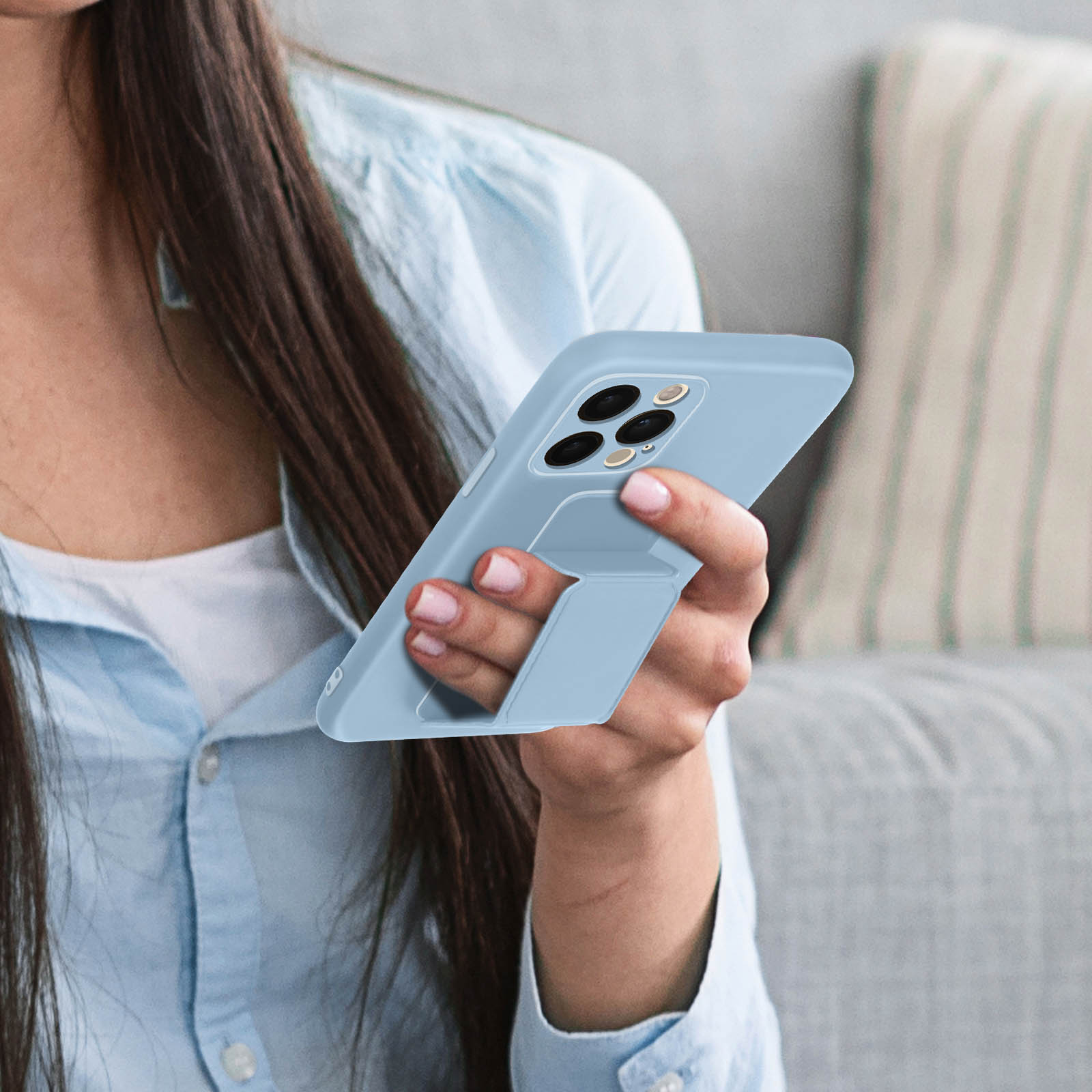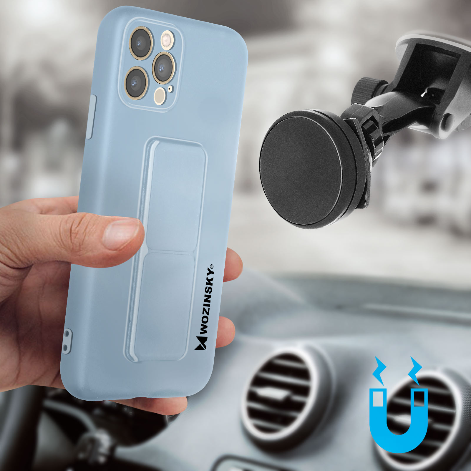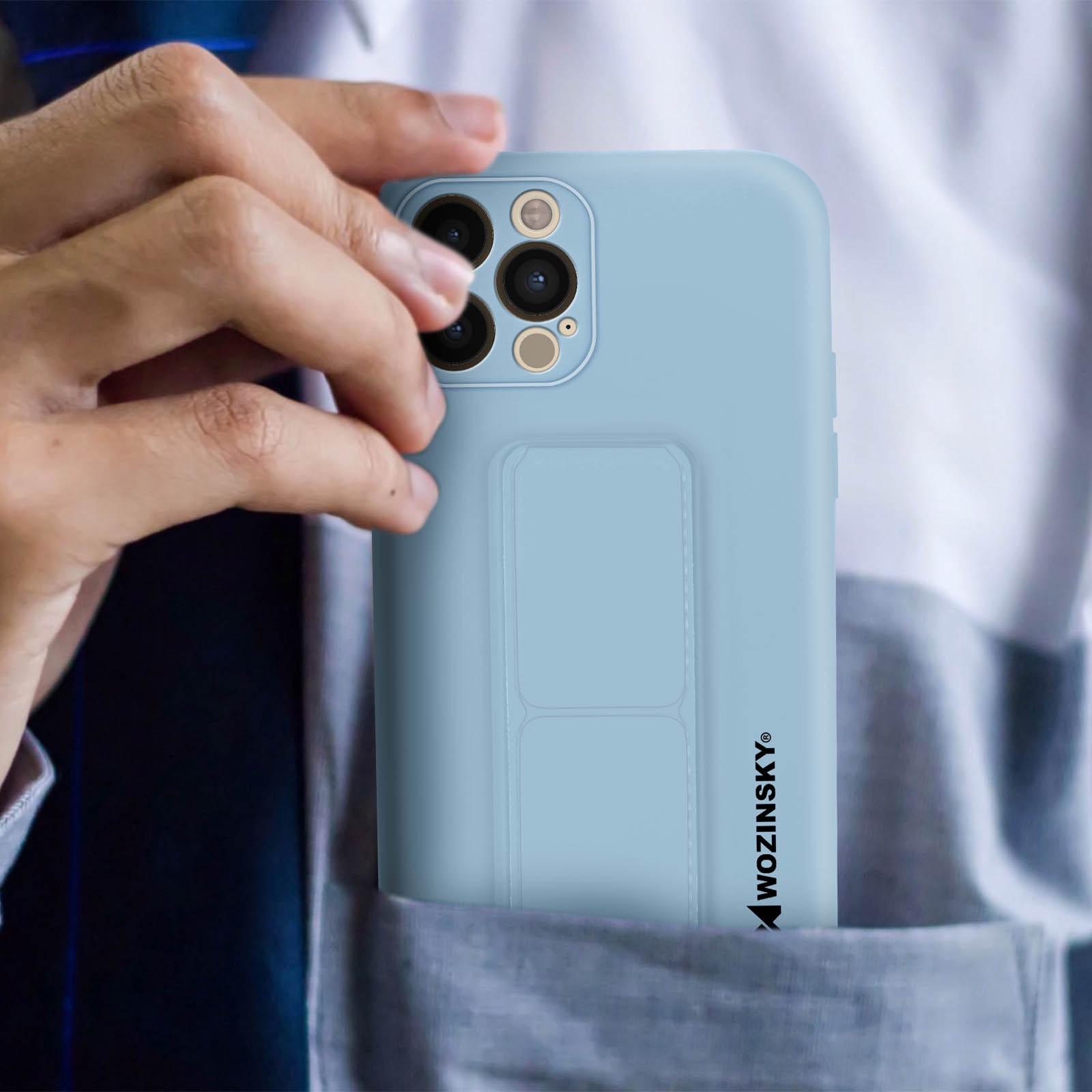 Coque de protection iPhone 12 Pro Max signée Wozinsky. En silicone souple antichoc et anti-rayures. Béquille pliable faisant office de support vidéo ou de poignée de maintien. Compatible support magnétique (non inclus). Fonctionnalités accessibles.