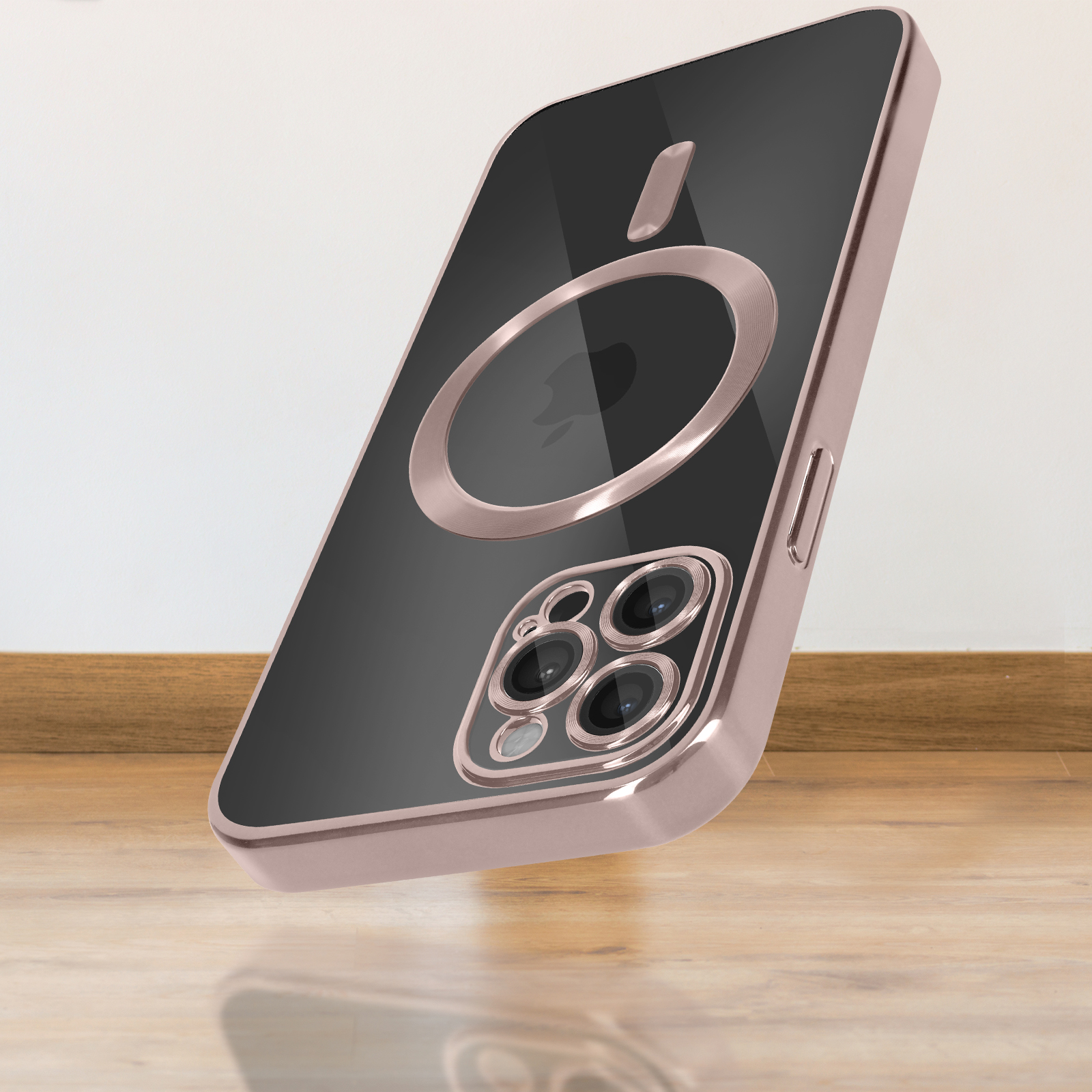 Coque MagSafe pour iPhone 12 Pro Silicone Protection Caméra Chromé Rose Gold