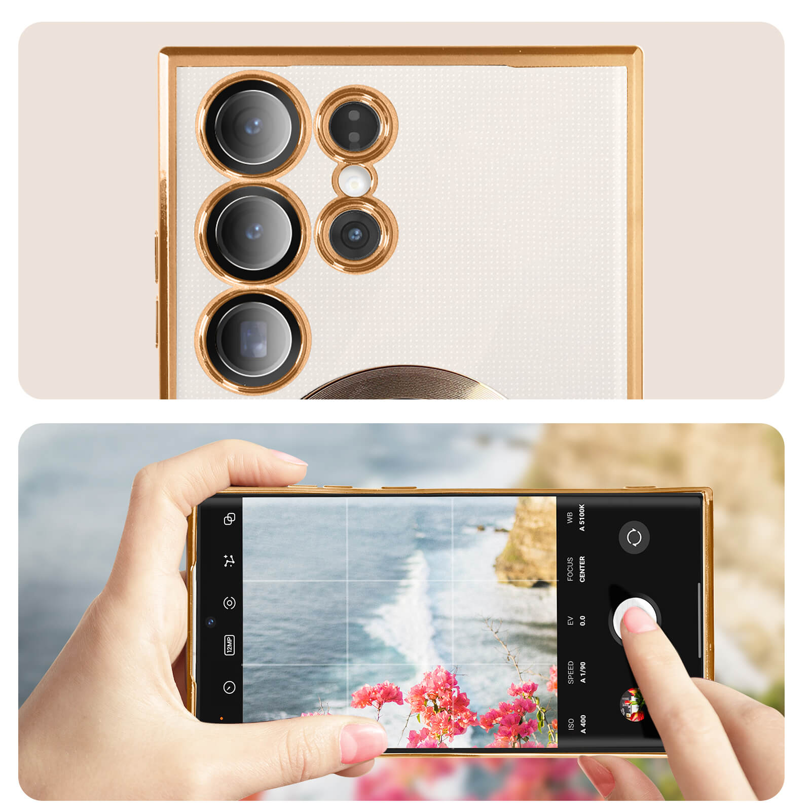 Coque MagSafe pour Samsung S23 Ultra protection caméra Transparent / Doré